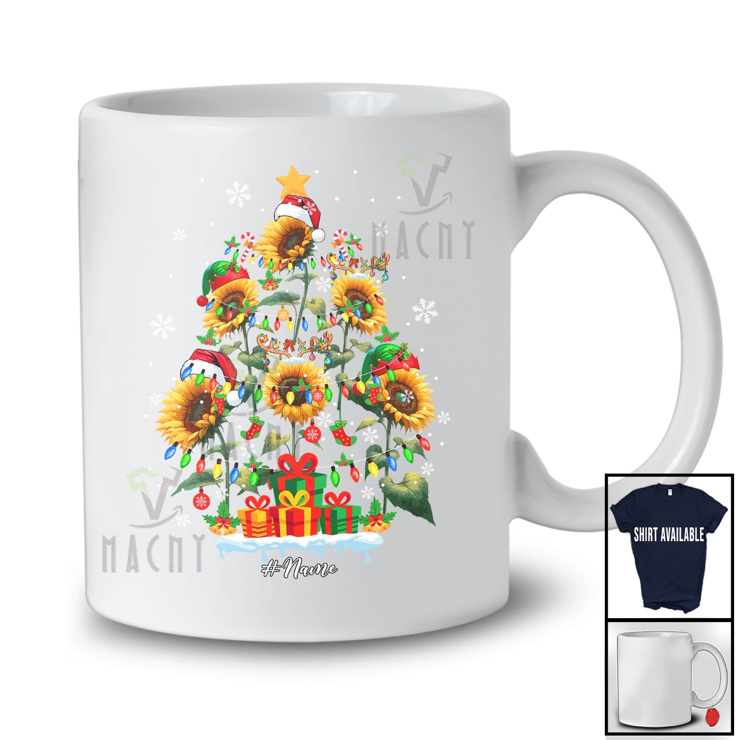 Personalized Christmas Tree Sunflowers; Adorable X-mas Lights Flowers; Custom Name Family T-Shirt