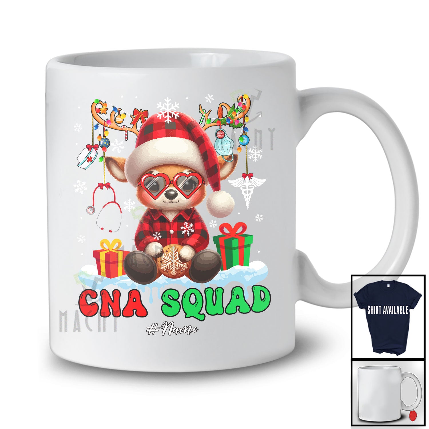 The Personalized CNA Squad; Fantastic Christmas Red Plaid Reindeer Snowing; Custom Name Nurse T-Shirt destined to impress, and priced at only $12.95, for a limited time.