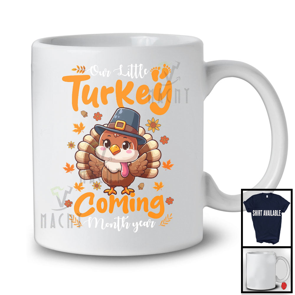 This Personalized Custom Month Year Our Little Turkey Coming, Lovely Thanksgiving Fall Leaves T-Shirt is great idea gift for your family, friends in this birthday, christmas, mother's day, father's day, patrick's day or any holiday.