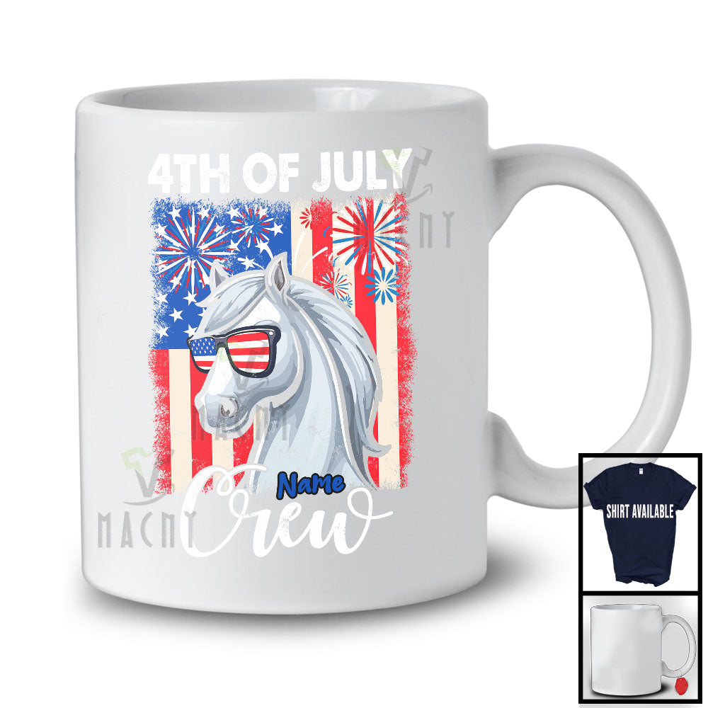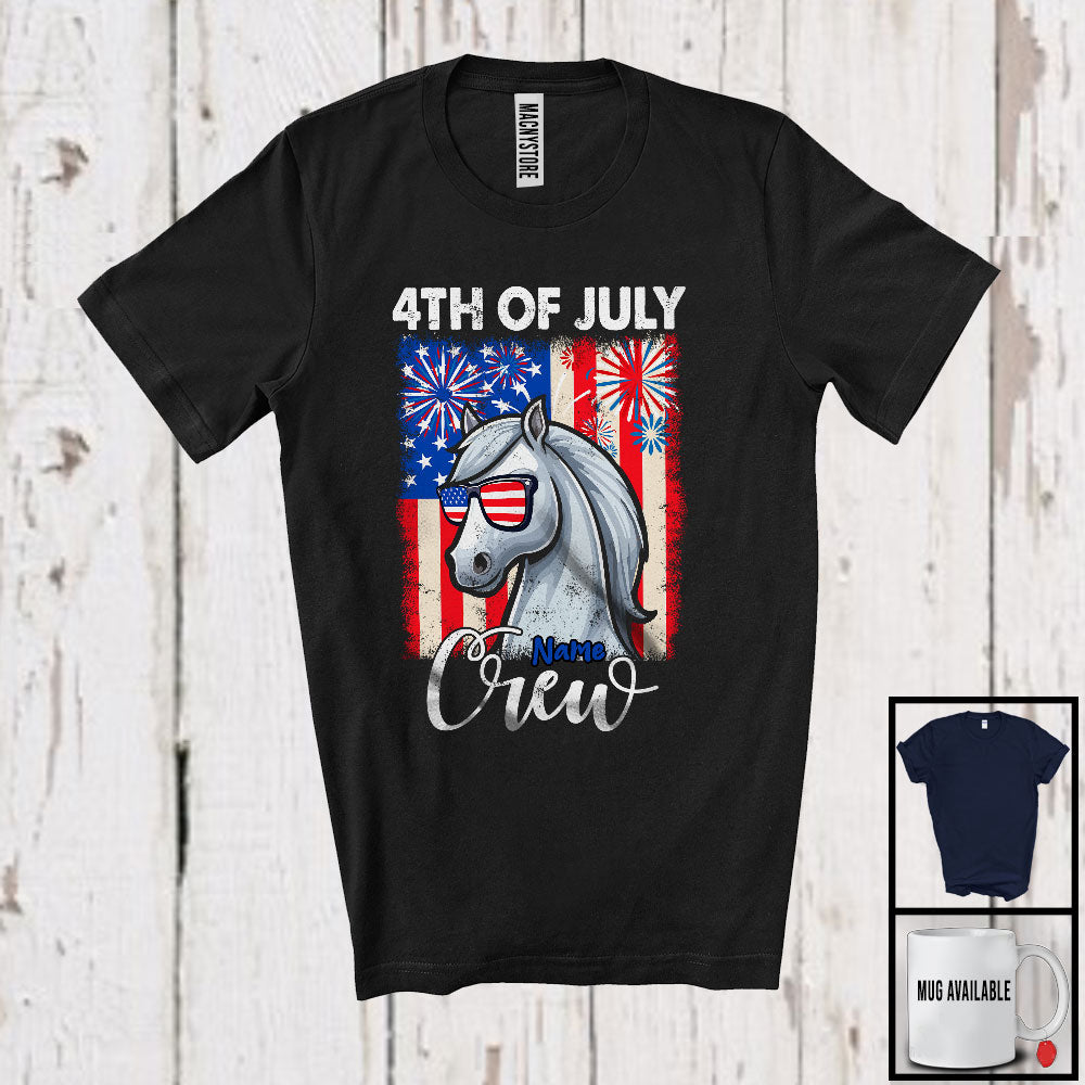 Personalized Custom Name 4th Of July Crew, Lovely Horse Farmer Lover, American Flag Patriotic T-Shirt