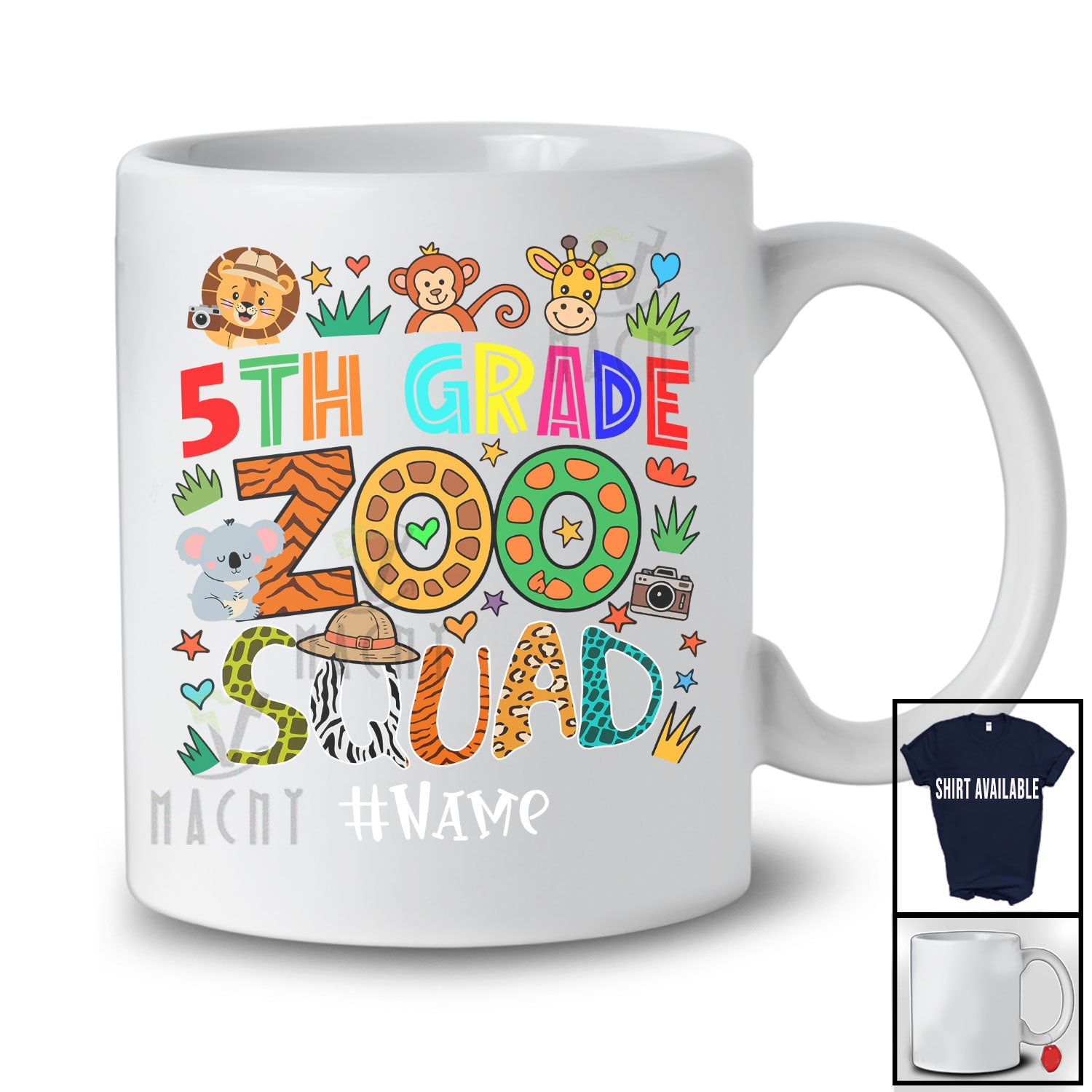 Personalized Custom Name 5th Grade Zoo Squad; Joyful Graduation Last Day Of School Animal T-Shirt. This cotton t-shirt is a durable staple product with a classic fit. One of the most popular items, it has a relaxed style made for everyday and casual wear.