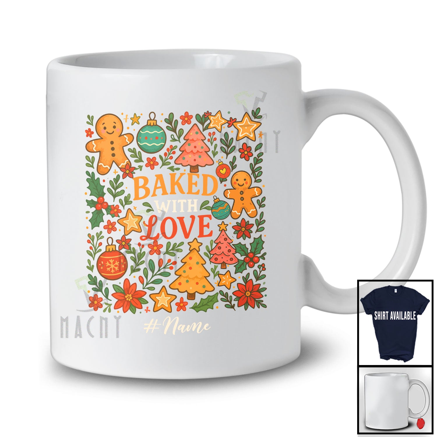 Personalized Custom Name Baked With Love; Lovely Christmas Gingerbread Floral; Baking Baker T-Shirt