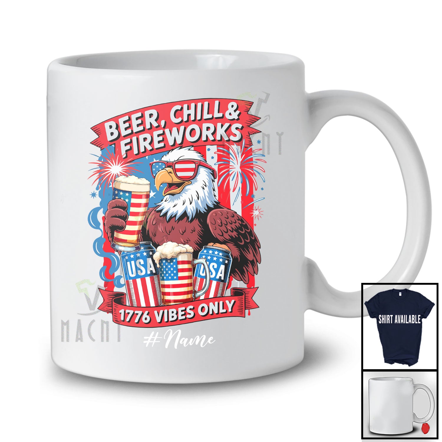 This Personalized Custom Name Beer Chill 1776 Vibes Only; Proud 4th Of July Drinking Eagle; Patriotic T-Shirt is great idea gift for your family, friends in this birthday, christmas, mother's day, father's day, patrick's day or any holiday.