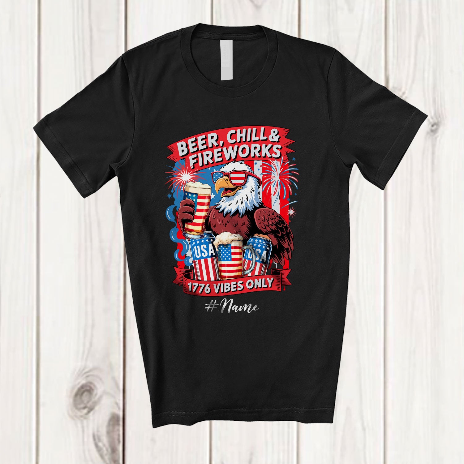 Personalized Custom Name Beer Chill 1776 Vibes Only; Proud 4th Of July Drinking Eagle; Patriotic T-Shirt