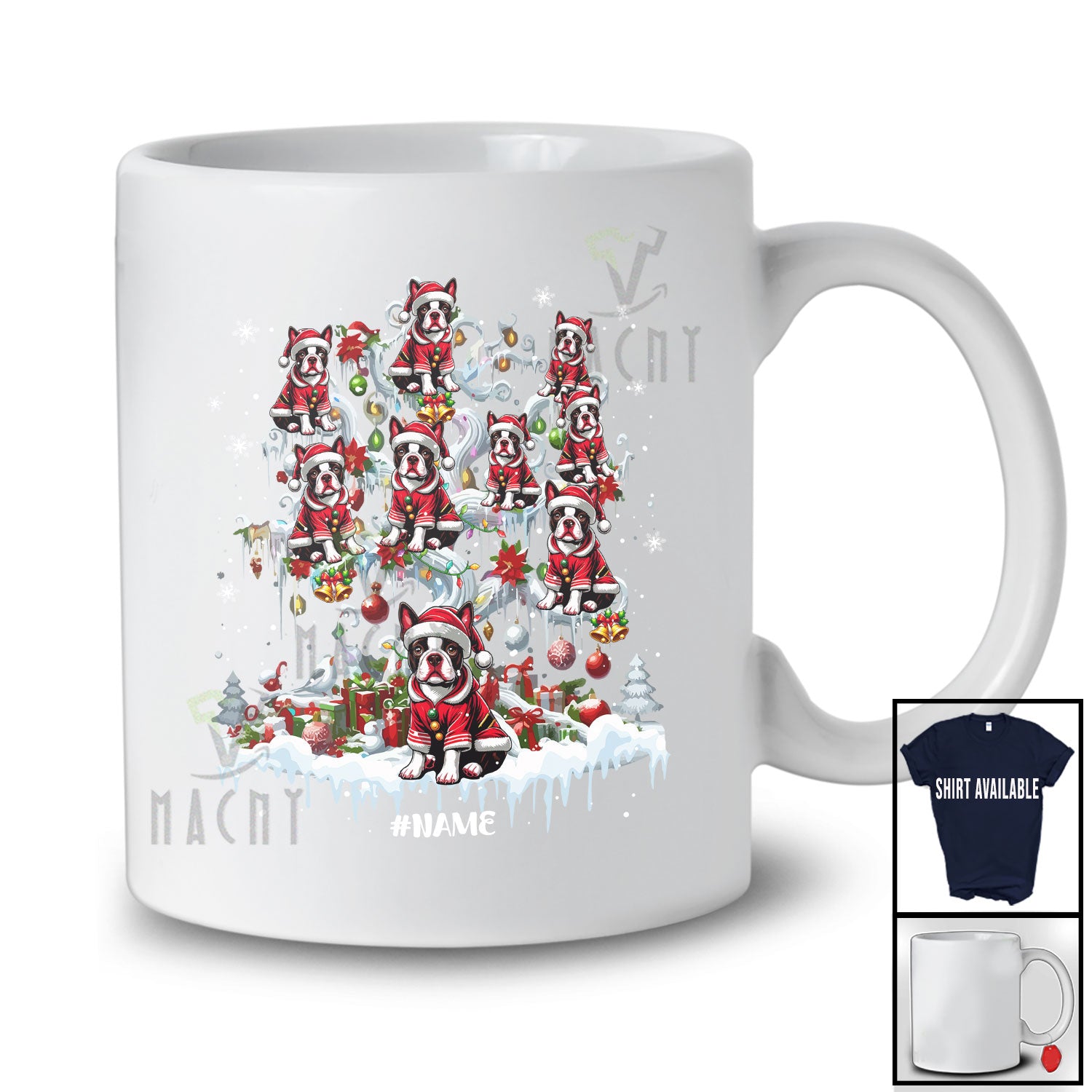 This Personalized Custom Name Boston Terrier Santa On Christmas Tree Snow; Lovely Winter Family T-Shirt is great idea gift for your family, friends in this birthday, christmas, mother's day, father's day, patrick's day or any holiday.