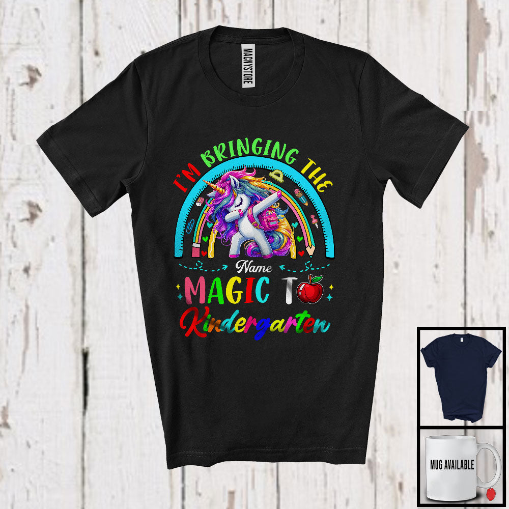 Personalized Custom Name Bringing The Magic To Kindergarten, Lovely First Day Of School Unicorn, Rainbow T-Shirt