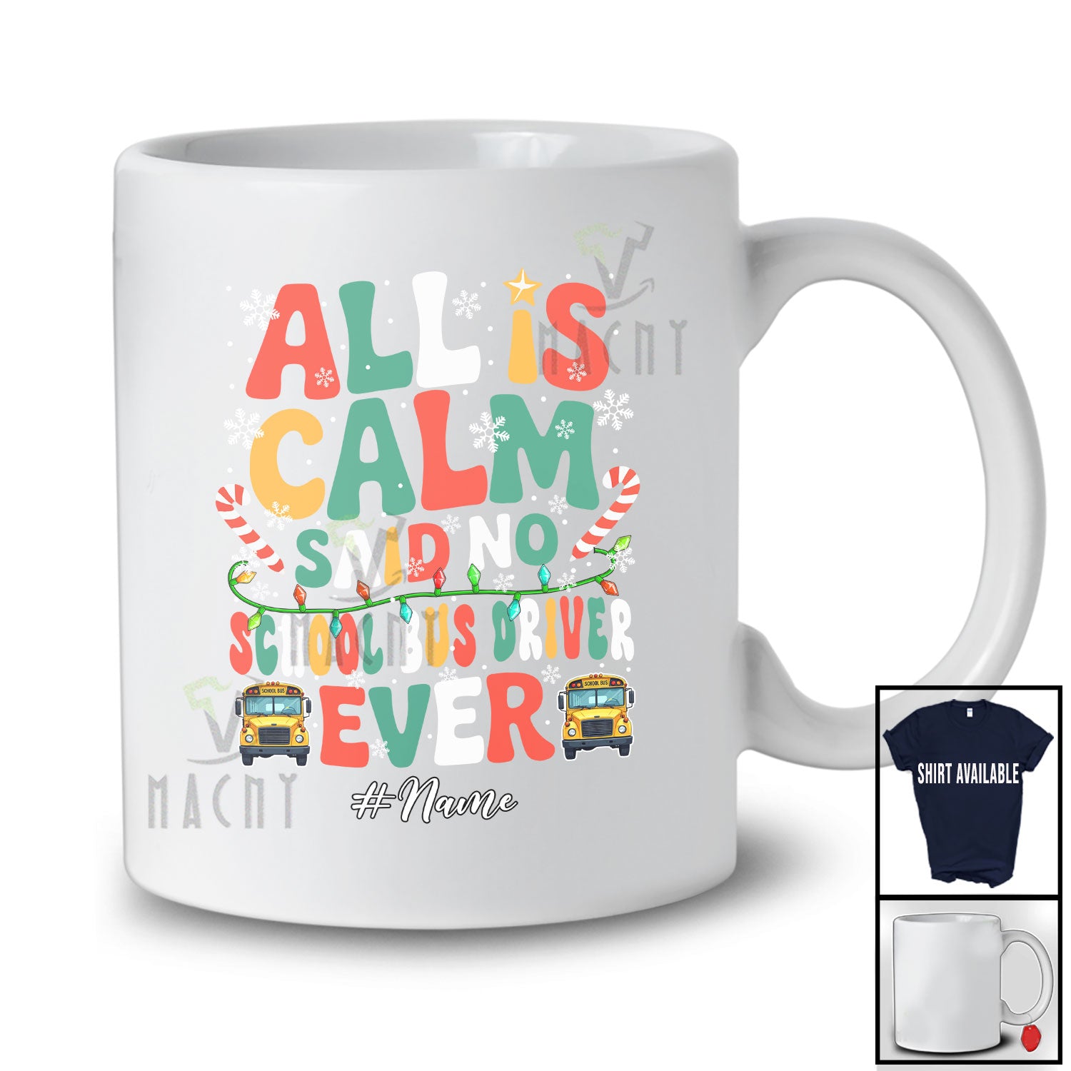 Personalized Custom Name Calm Said No School Bus Driver Ever; Lovely Christmas Lights Jobs Family T-Shirt. This cotton t-shirt is a durable staple product with a classic fit. One of the most popular items, it has a relaxed style made for everyday and casual wear.