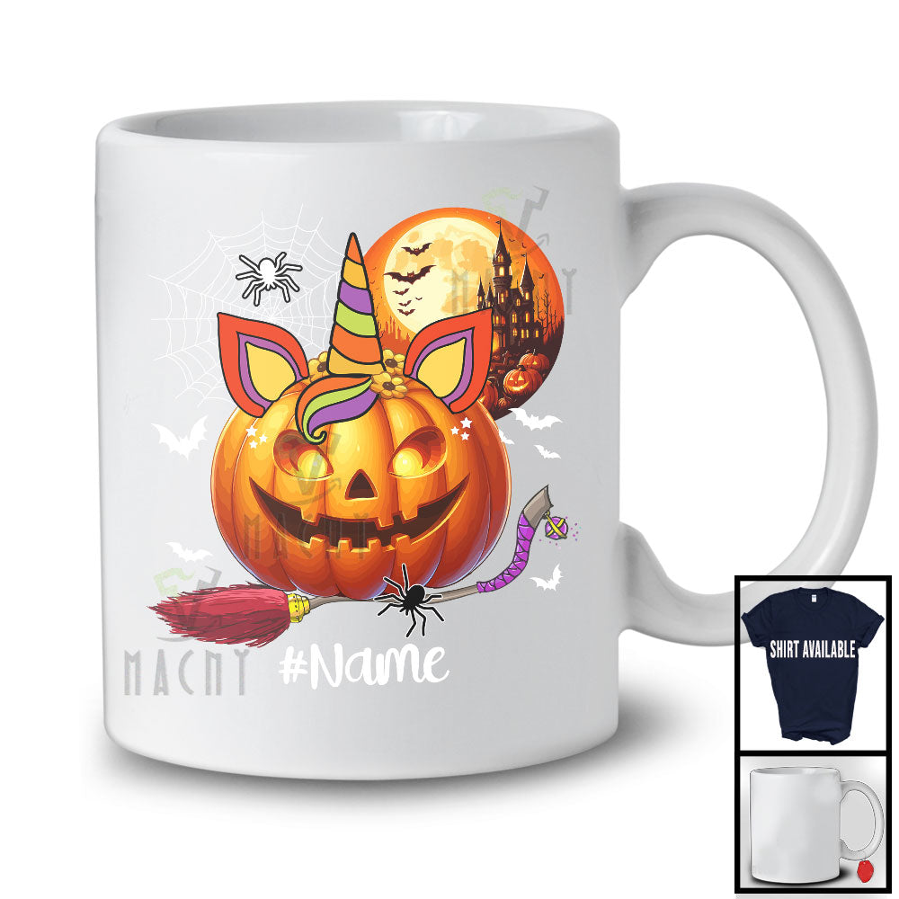 Personalized Custom Name Carved Pumpkin Unicorn Face; Lovely Halloween Unicorn; Boys Girls Family T-Shirt. This cotton t-shirt is a durable staple product with a classic fit. One of the most popular items, it has a relaxed style made for everyday and casual wear.