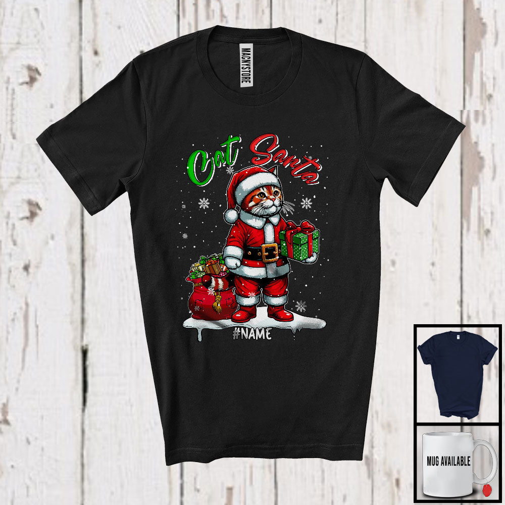 Personalized Custom Name Cat Santa, Adorable Christmas Santa Cat, X-mas Family Group T-Shirt