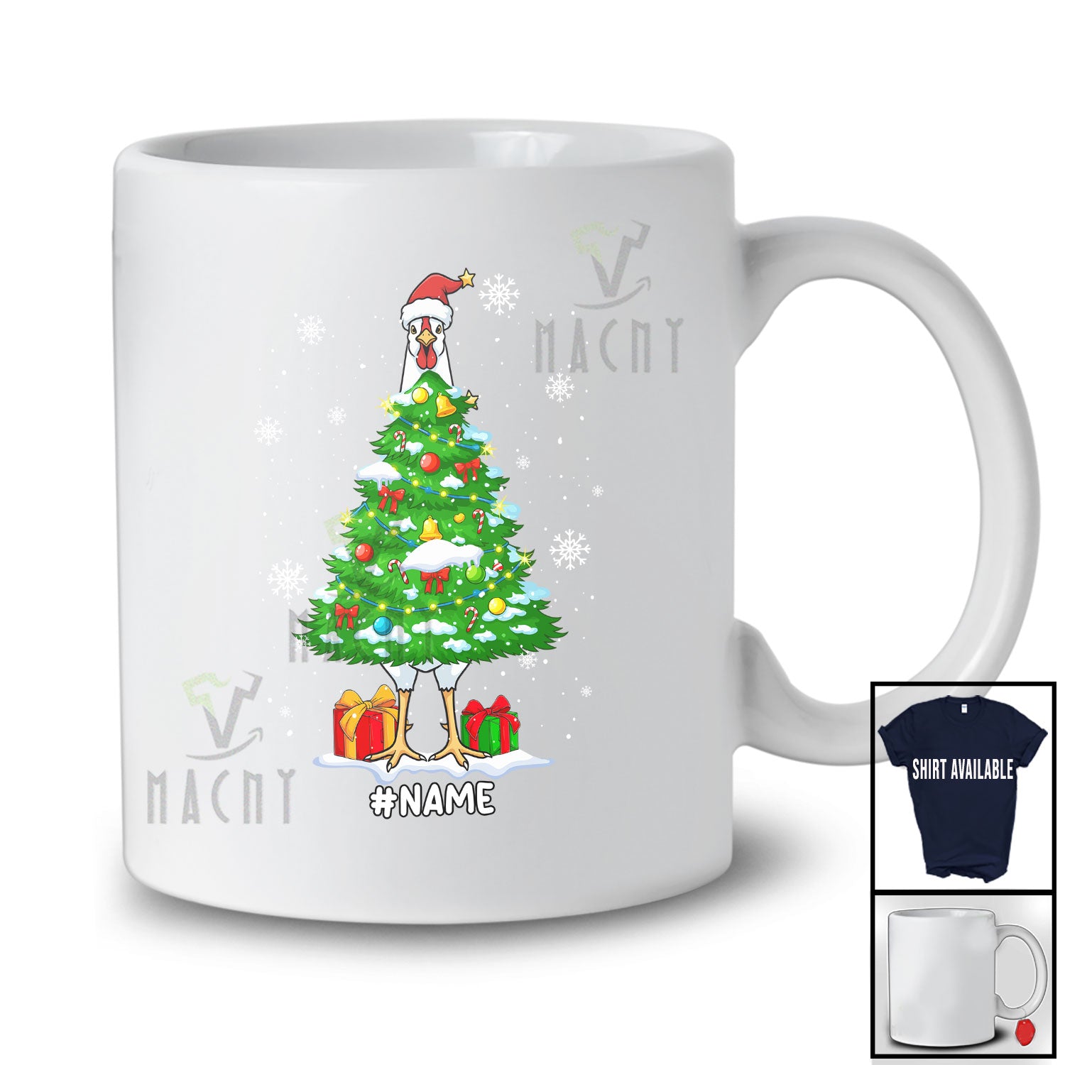 Personalized Custom Name Chicken Christmas Tree; Awesome X-mas Santa Chicken Family T-Shirt. This cotton t-shirt is a durable staple product with a classic fit. One of the most popular items, it has a relaxed style made for everyday and casual wear.