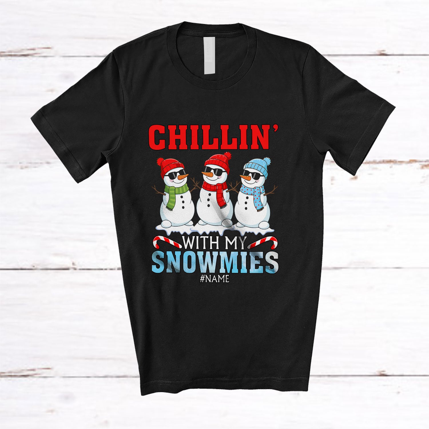 Personalized Custom Name Chillin' With My Snowmies; Lovely Three Snowman Sunglasses; Teacher Family T-Shirt
