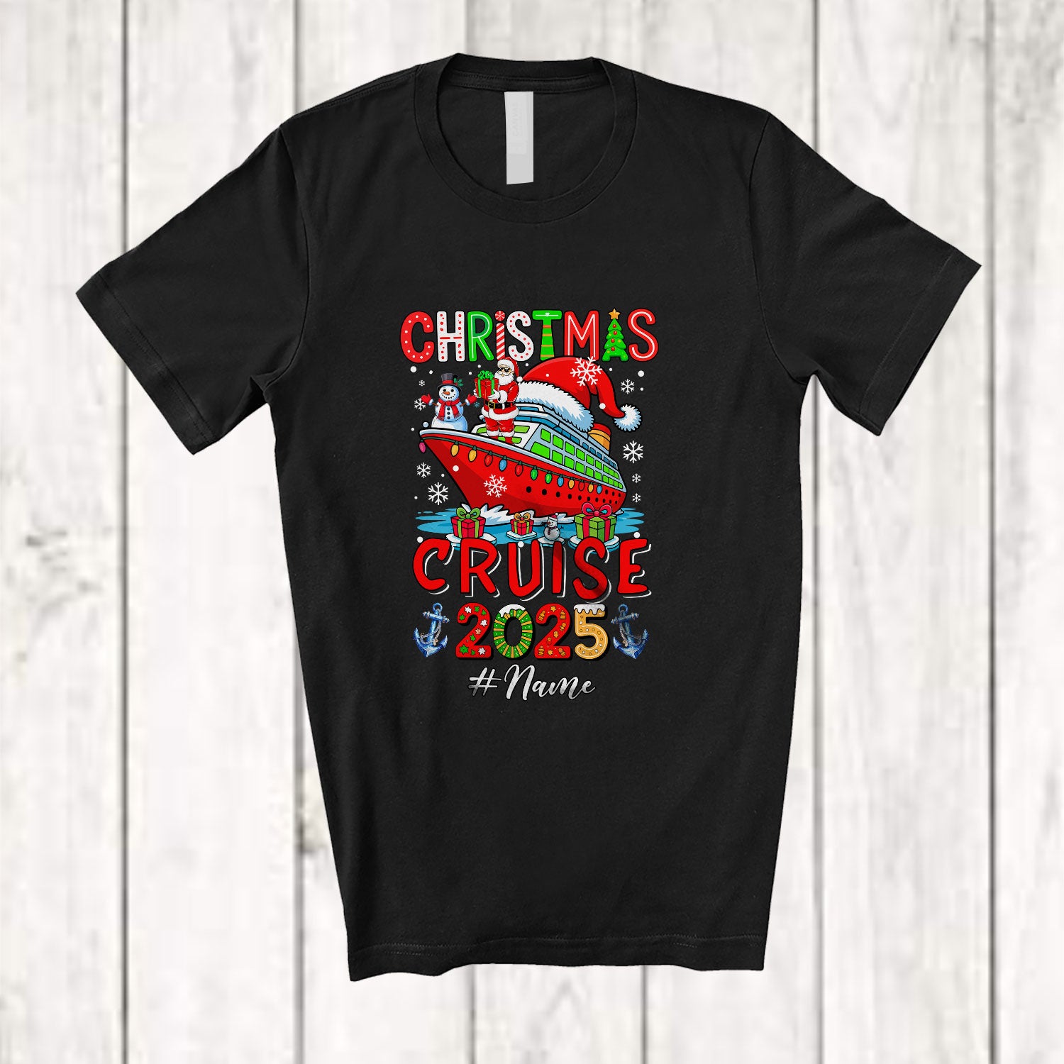 Personalized Custom Name Christmas Cruise 2025; Lovely Christmas Snowman Santa Family T-Shirt