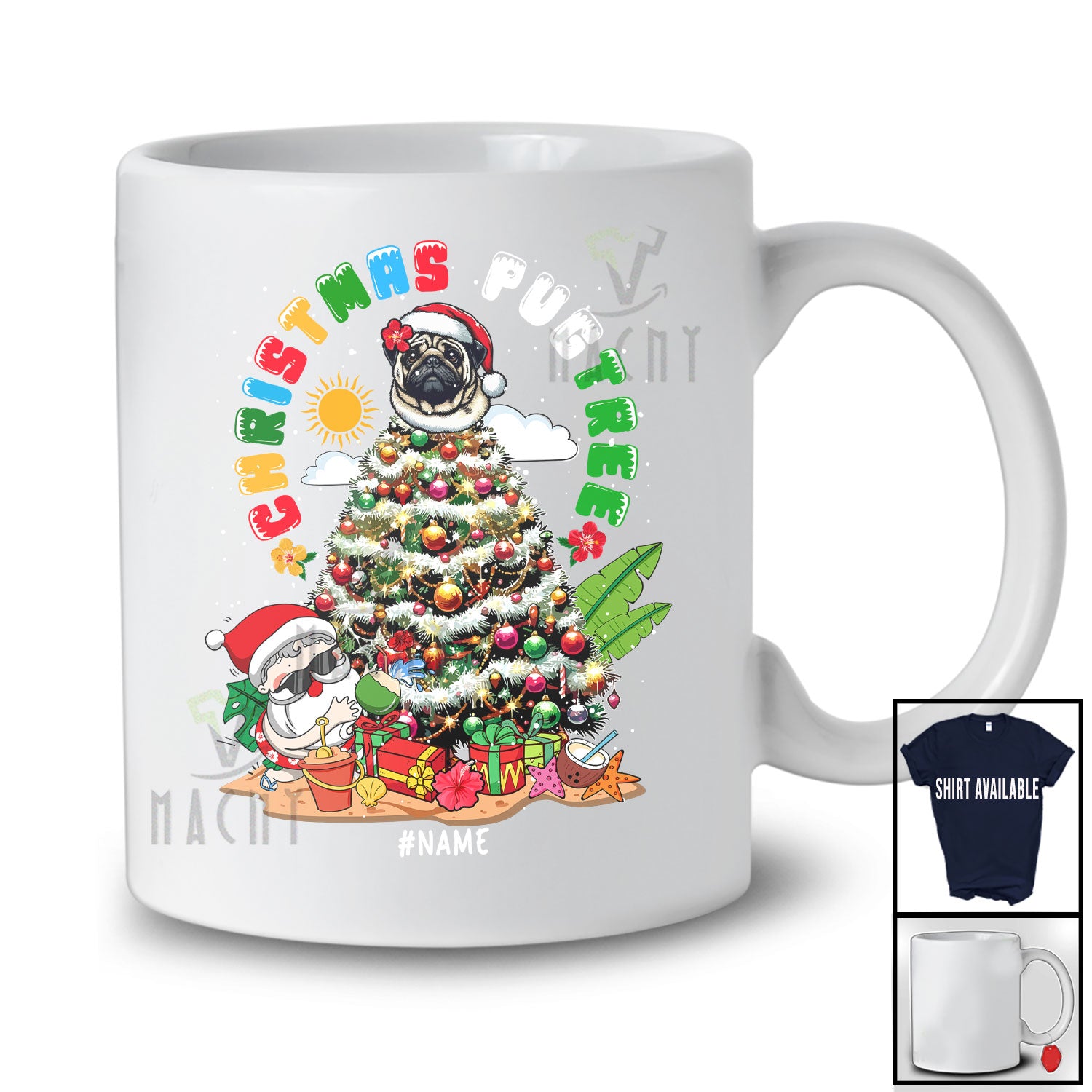 This Personalized Custom Name Christmas Pugtree; Humorous Christmas Santa Head Pug Owner T-Shirt is great idea gift for your family, friends in this birthday, christmas, mother's day, father's day, patrick's day or any holiday.