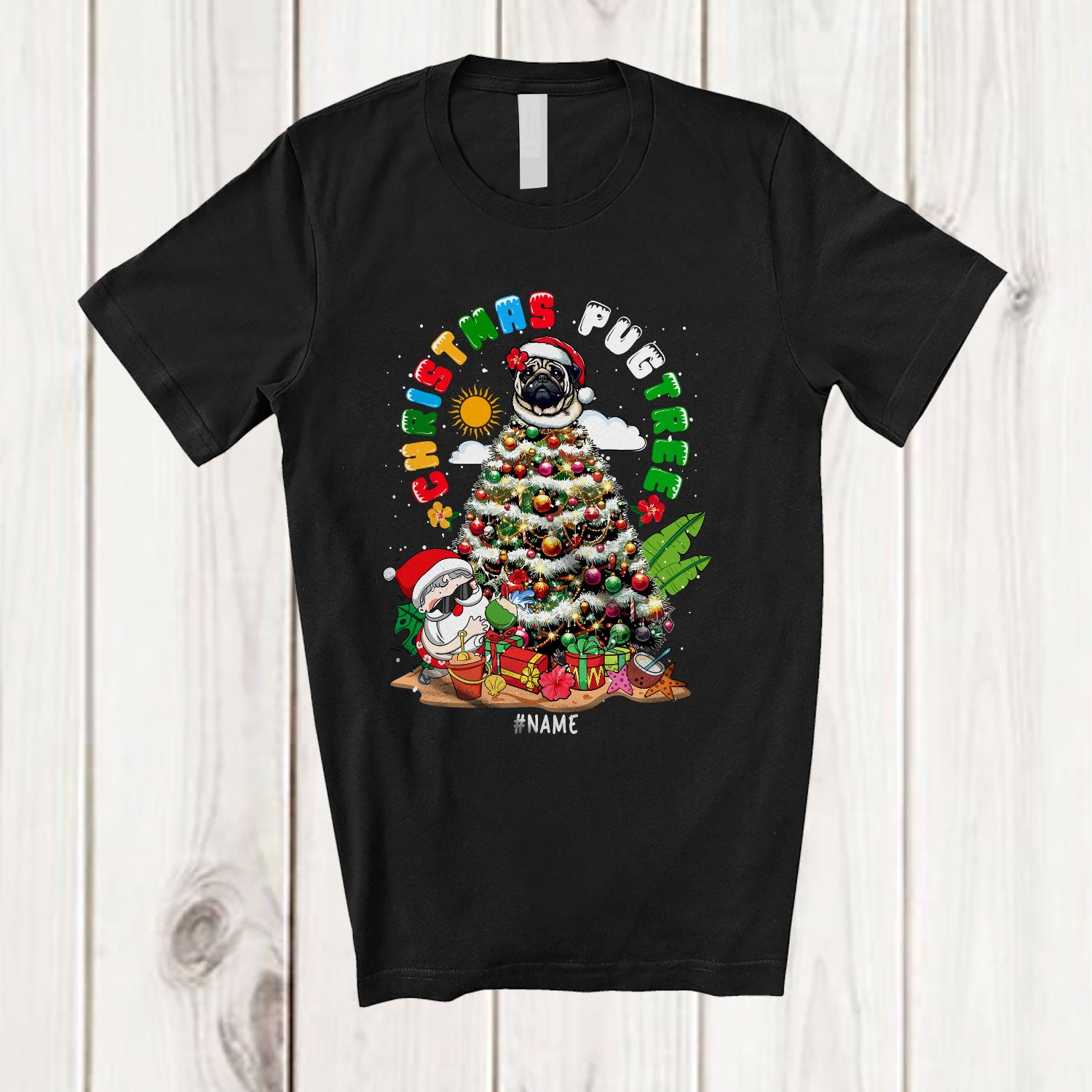 The Personalized Custom Name Christmas Pugtree; Humorous Christmas Santa Head Pug Owner T-Shirt is evocative, to say the least, but that's why you're drawn to it in the first place.