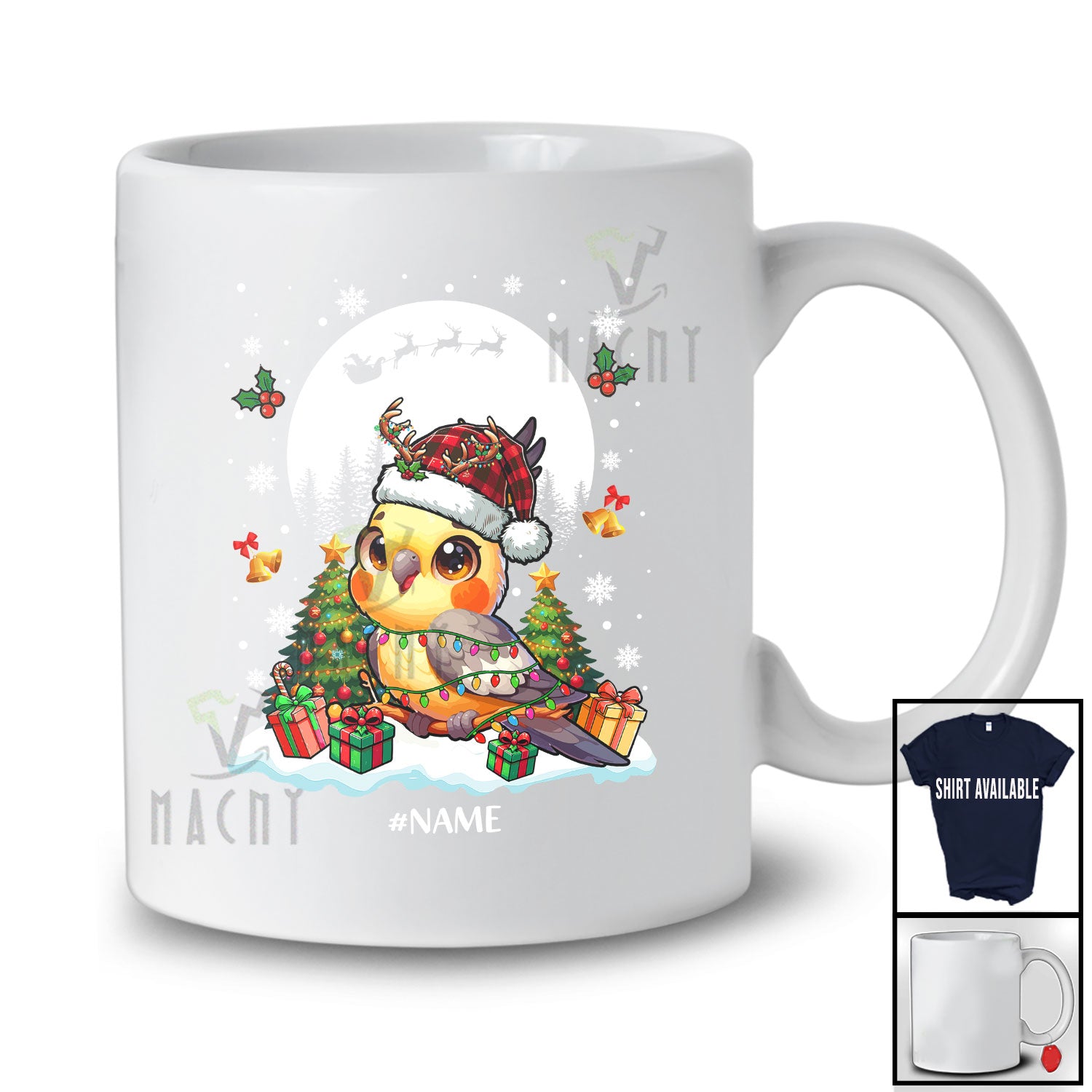 • Personalized Custom Name Cockatiel Plaid Santa Reindeer; Lovely Christmas Tree Lights Moon Bird T-Shirt. This cotton t-shirt is a durable staple product with a classic fit. One of the most popular items, it has a relaxed style made for everyday and casual wear.