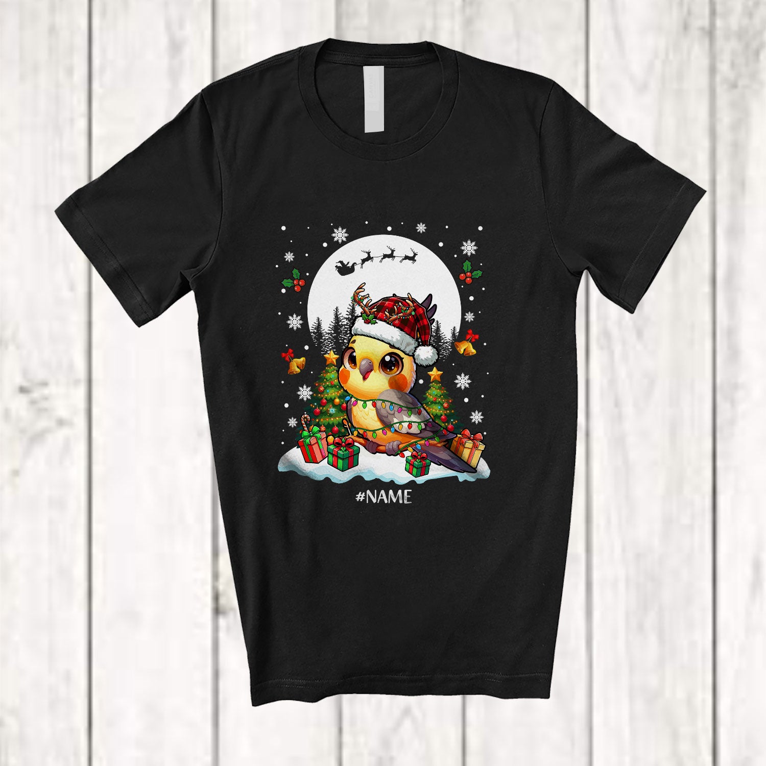 new MacnyStore - Personalized Custom Name Cockatiel Plaid Santa Reindeer; Lovely Christmas Tree Lights Moon Bird T-Shirt – Macnystore