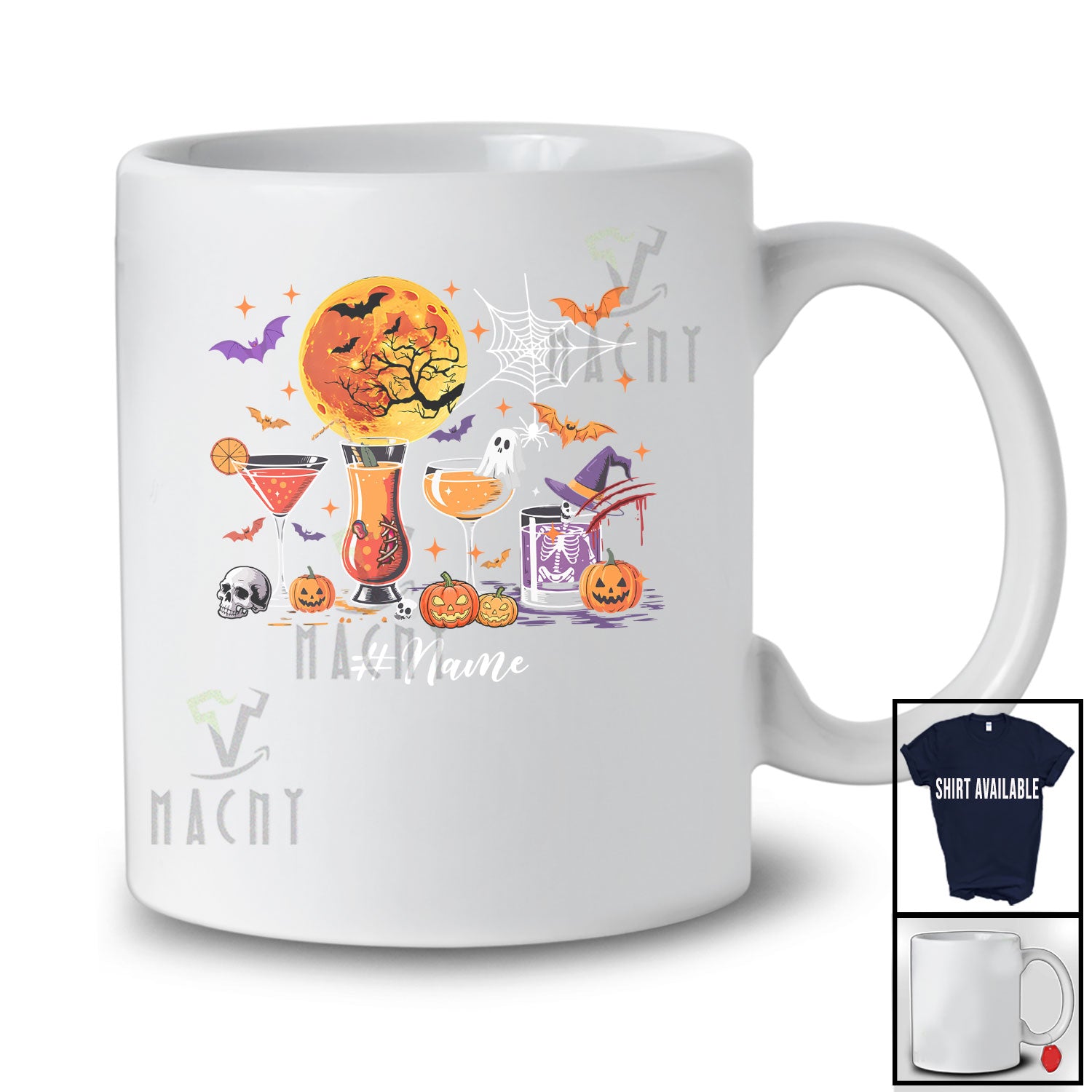 Personalized Custom Name Collection Cocktail of Glasses Witch Pumpkin; Joyful Halloween Drinking T-Shirt. This cotton t-shirt is a durable staple product with a classic fit. One of the most popular items, it has a relaxed style made for everyday and casual wear.