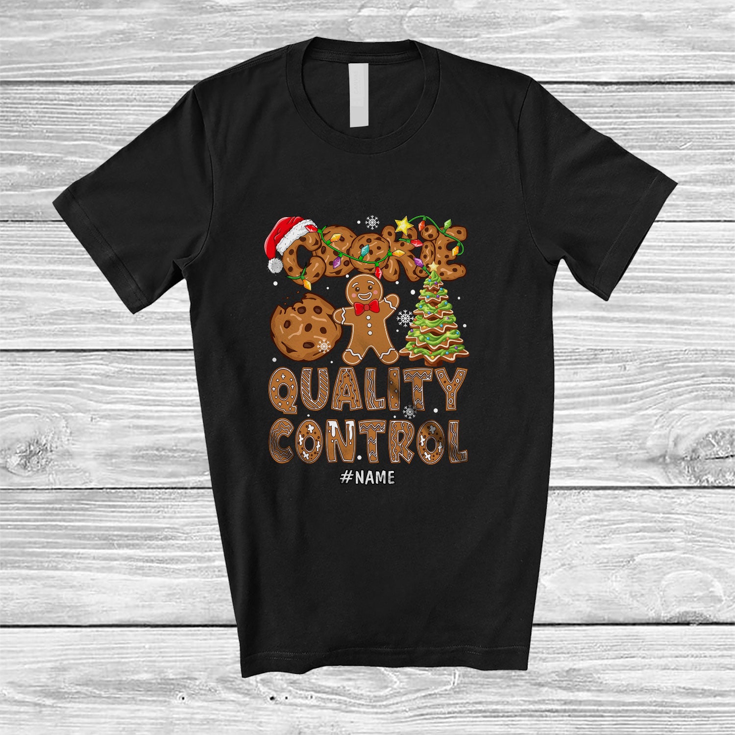 Personalized Custom Name Cookie Quality Control; Lovely Christmas Gingerbread Baker Baking T-Shirt. This cotton t-shirt is a durable staple product with a classic fit. One of the most popular items, it has a relaxed style made for everyday and casual wear.