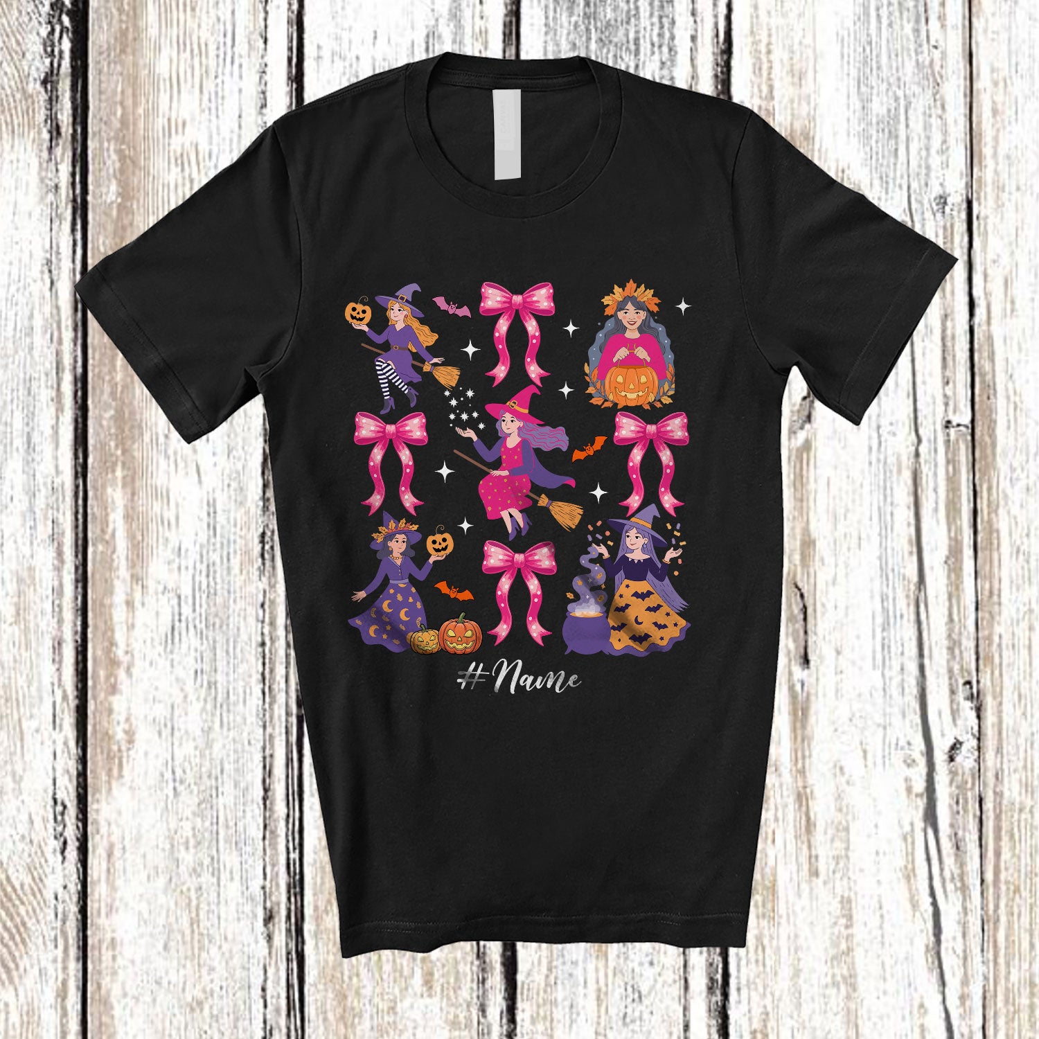 Personalized Custom Name Coquette Witch Collection; Humorous Halloween Costume Family T-Shirt