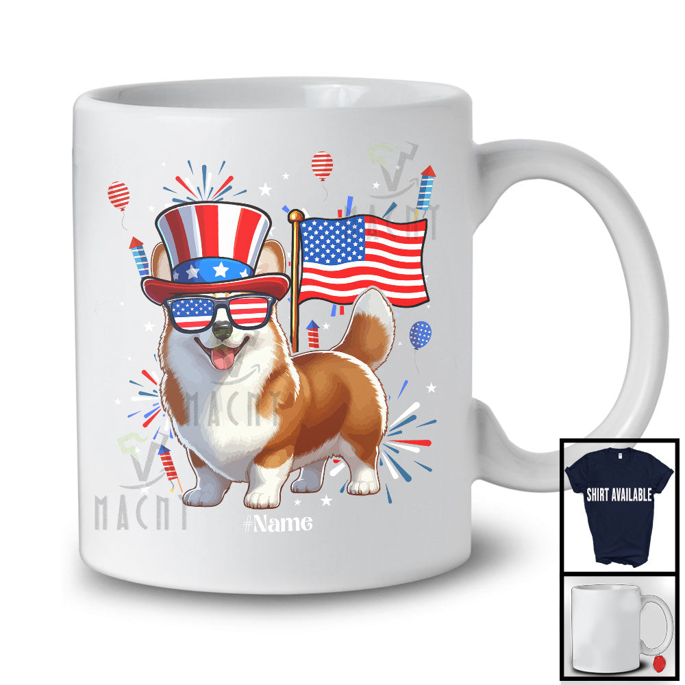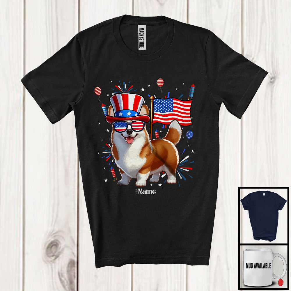 • Personalized Custom Name Corgi, Lovely 4th Of July American Flag Fireworks, Corgi Patriotic T-Shirt. This cotton t-shirt is a durable staple product with a classic fit. One of the most popular items, it has a relaxed style made for everyday and casual wear.