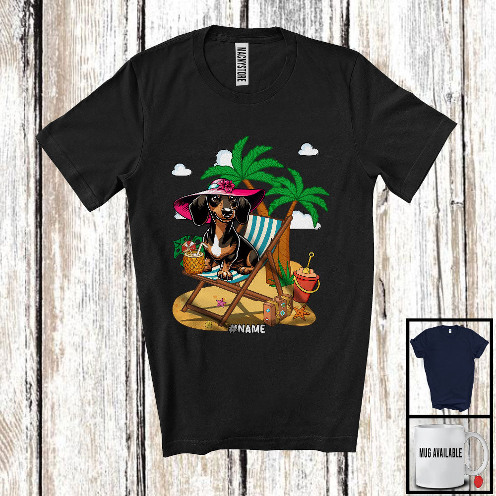 Personalized Custom Name Dachshund On Beach, Lovely Summer Vacation Palm Tree, Family T-Shirt