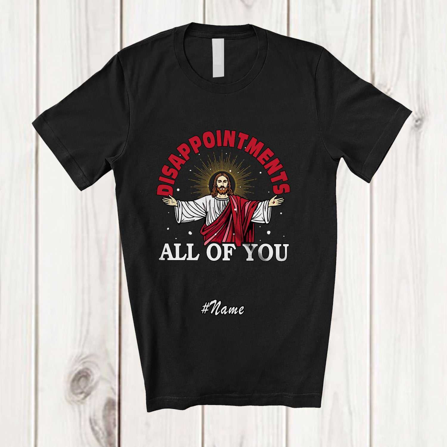 The Personalized Custom Name Disappointments All Of You; Sarcastic Christmas Jesus Family T-Shirt is far and away, one of our most popular items. People can't seem to get enough of it.