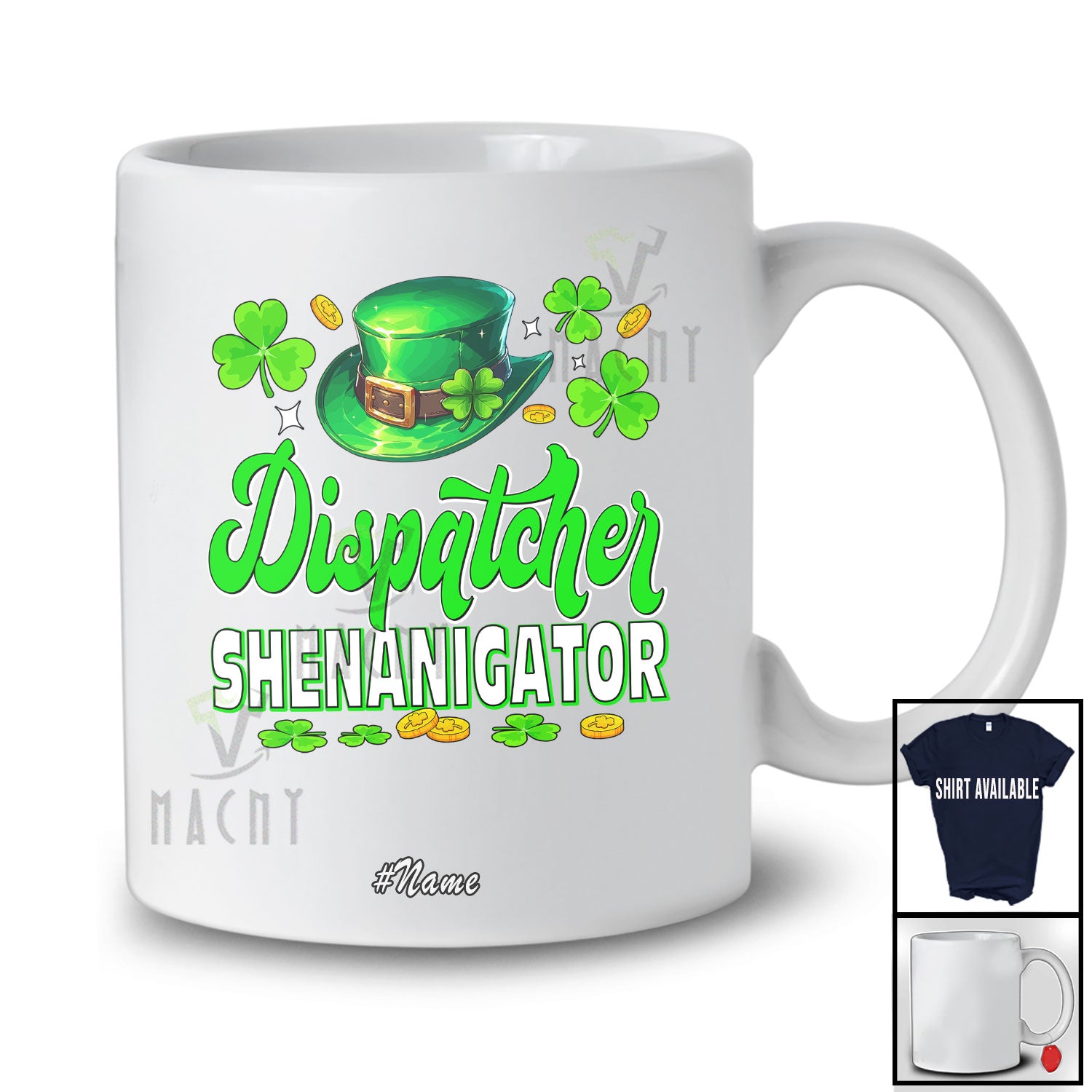 Personalized Custom Name Dispatcher Shenanigator; Joyful St. Patrick's Day Shamrock Shenanigans T-Shirt. This cotton t-shirt is a durable staple product with a classic fit. One of the most popular items, it has a relaxed style made for everyday and casual wear.