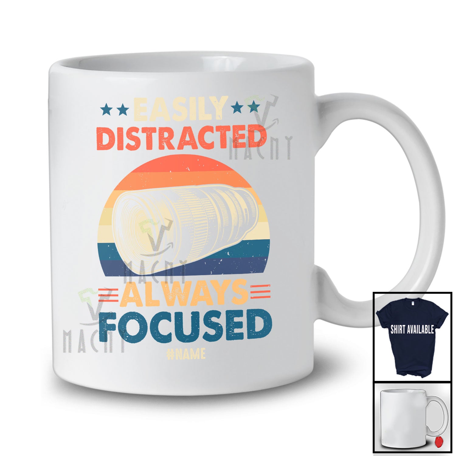 Personalized Custom Name Easily Distracted; Lovely Photographer Photography Vintage Retro T-Shirt. This cotton t-shirt is a durable staple product with a classic fit. One of the most popular items, it has a relaxed style made for everyday and casual wear.