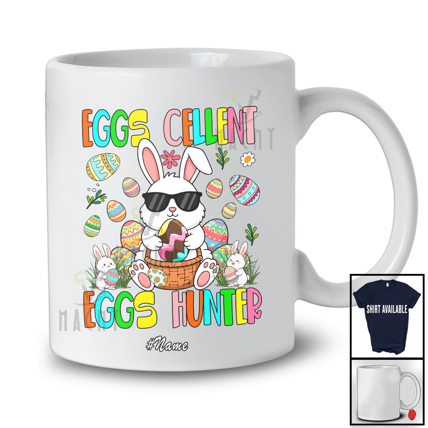 Personalized Custom Name Eggs Cellent Eggs Hunter; Humorous Easter Excellent Bunny Hunting Eggs T-Shirt. This cotton t-shirt is a durable staple product with a classic fit. One of the most popular items, it has a relaxed style made for everyday and casual wear.