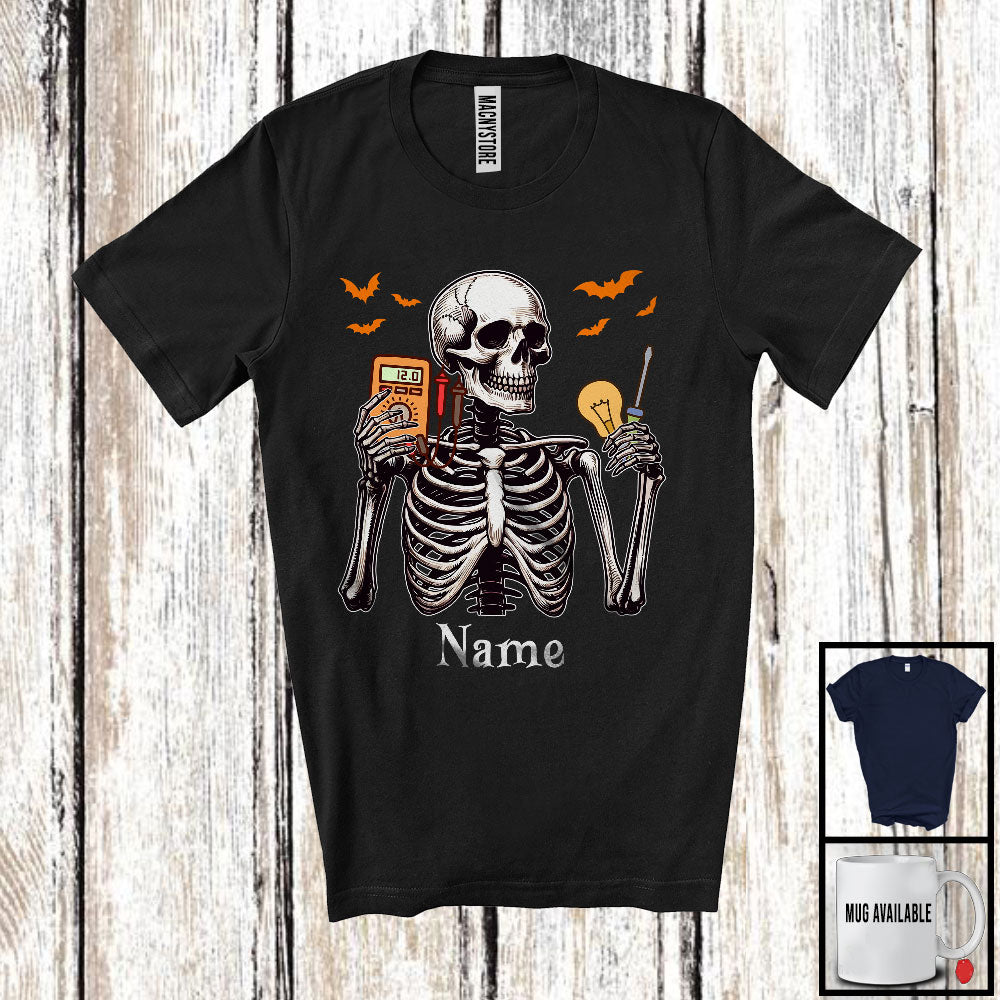 new MacnyStore - Personalized Custom Name Electrician Skeleton, Horror Halloween Costume Proud Careers Group T-Shirt – Macnystore