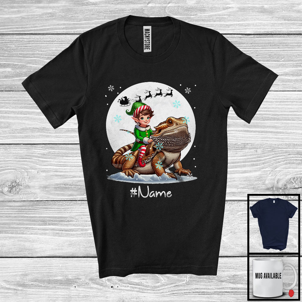 Personalized Custom Name Elf Riding Bearded Dragon, Joyful Christmas Moon Snow, X-mas Team T-Shirt