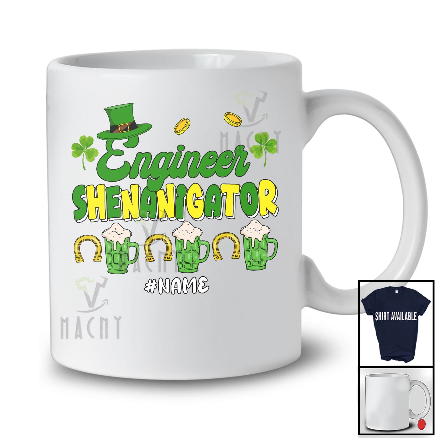 Personalized Custom Name Engineer Shenanigator; Proud St. Patrick's Day Jobs; Beer Drinking T-Shirt. This cotton t-shirt is a durable staple product with a classic fit. One of the most popular items, it has a relaxed style made for everyday and casual wear.