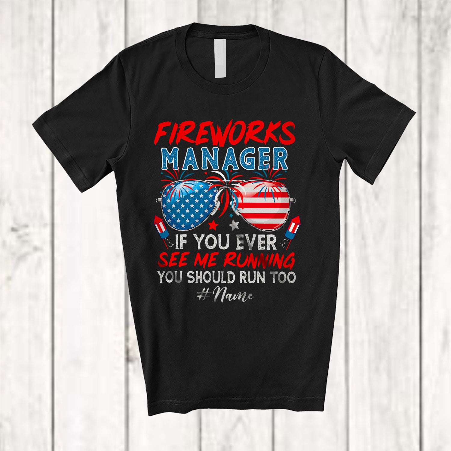 Personalized Custom Name Fireworks Manager Run; Joyful 4th Of July Sunglasses; Patriotic T-Shirt