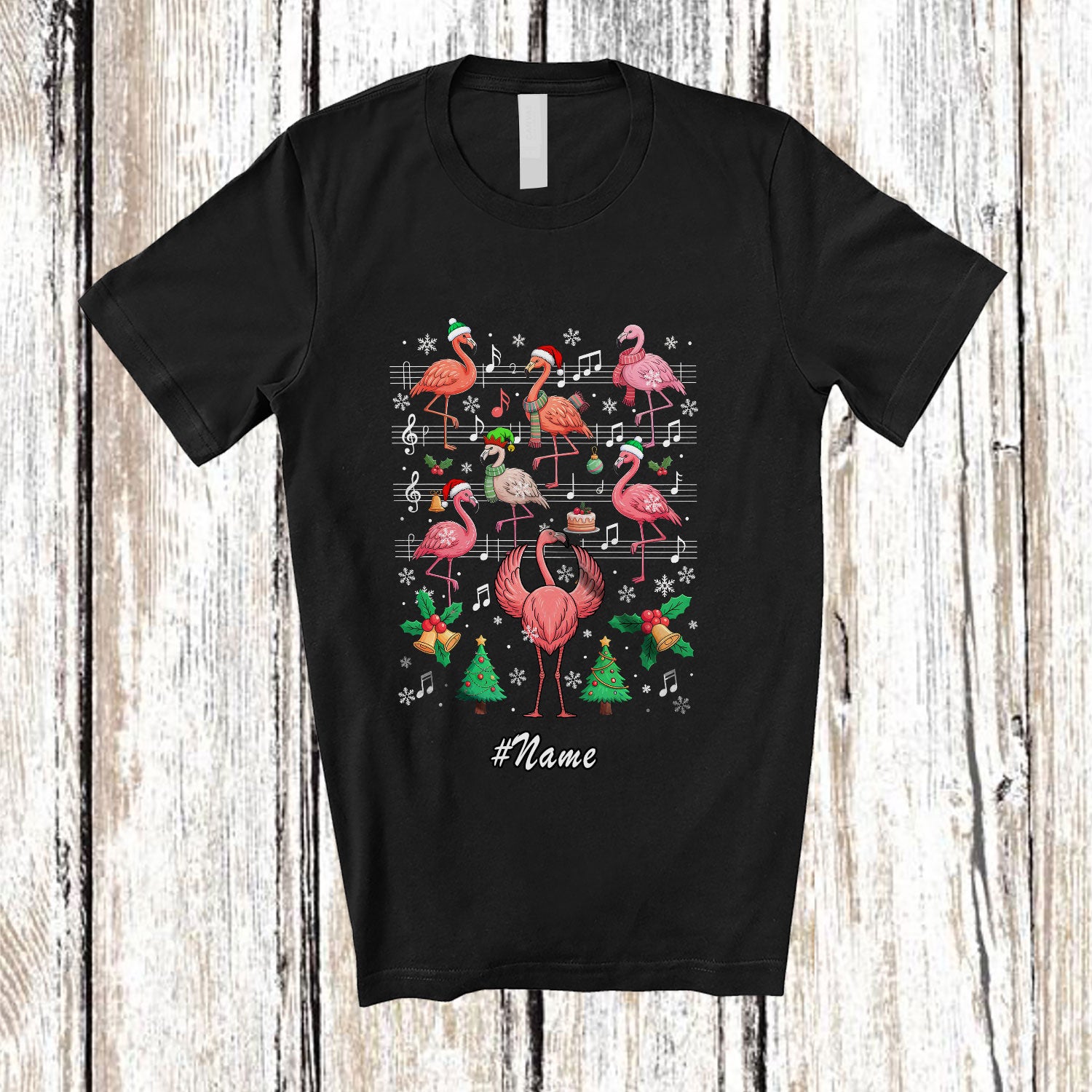 • Personalized Custom Name Flamingo Music Teacher; Lovely Christmas Santa Elf Flamingo Teaching T-Shirt. This cotton t-shirt is a durable staple product with a classic fit. One of the most popular items, it has a relaxed style made for everyday and casual wear.