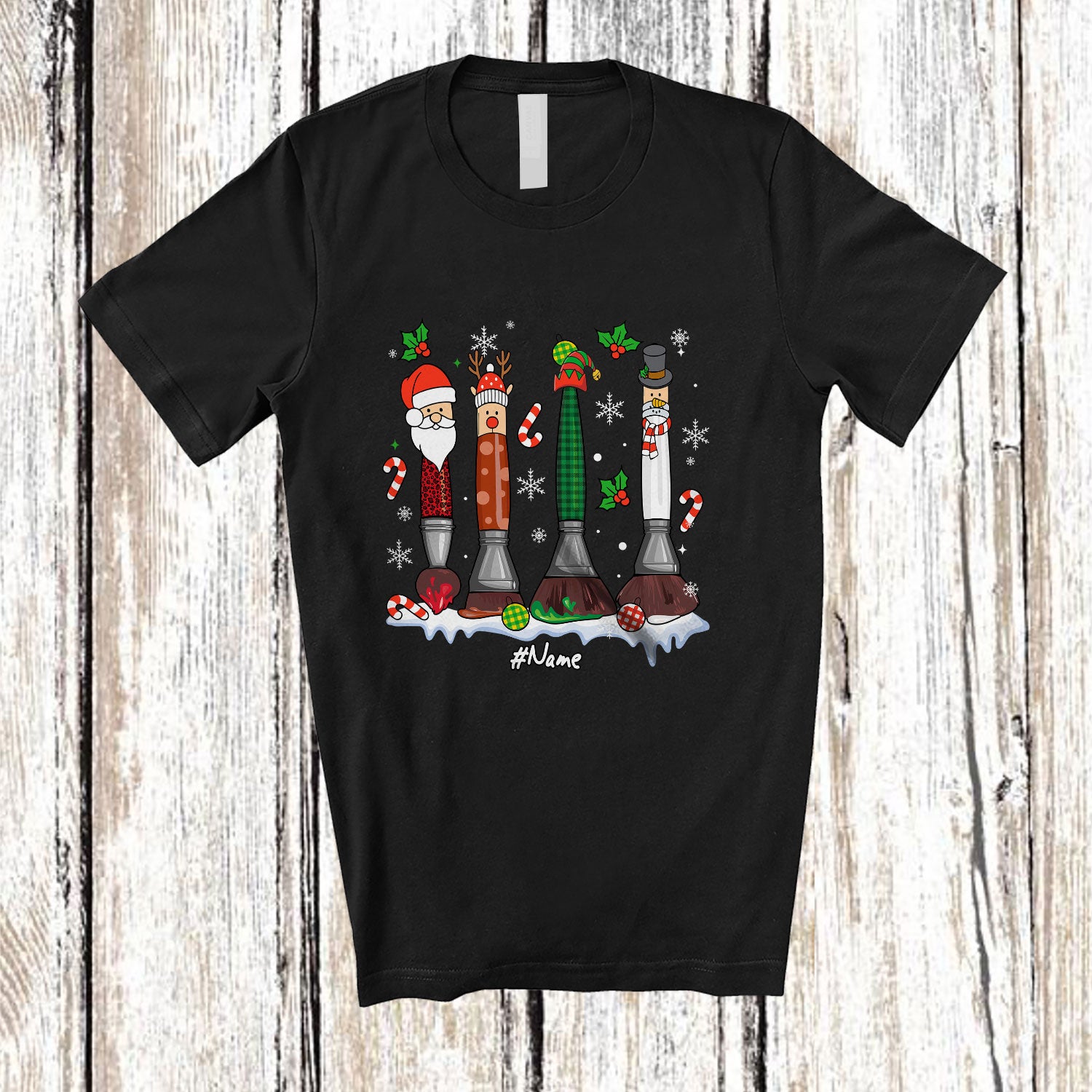 Personalized Custom Name Four Santa Elf Reindeer Brush; Lovely Christmas Artist Group; Family T-Shirt