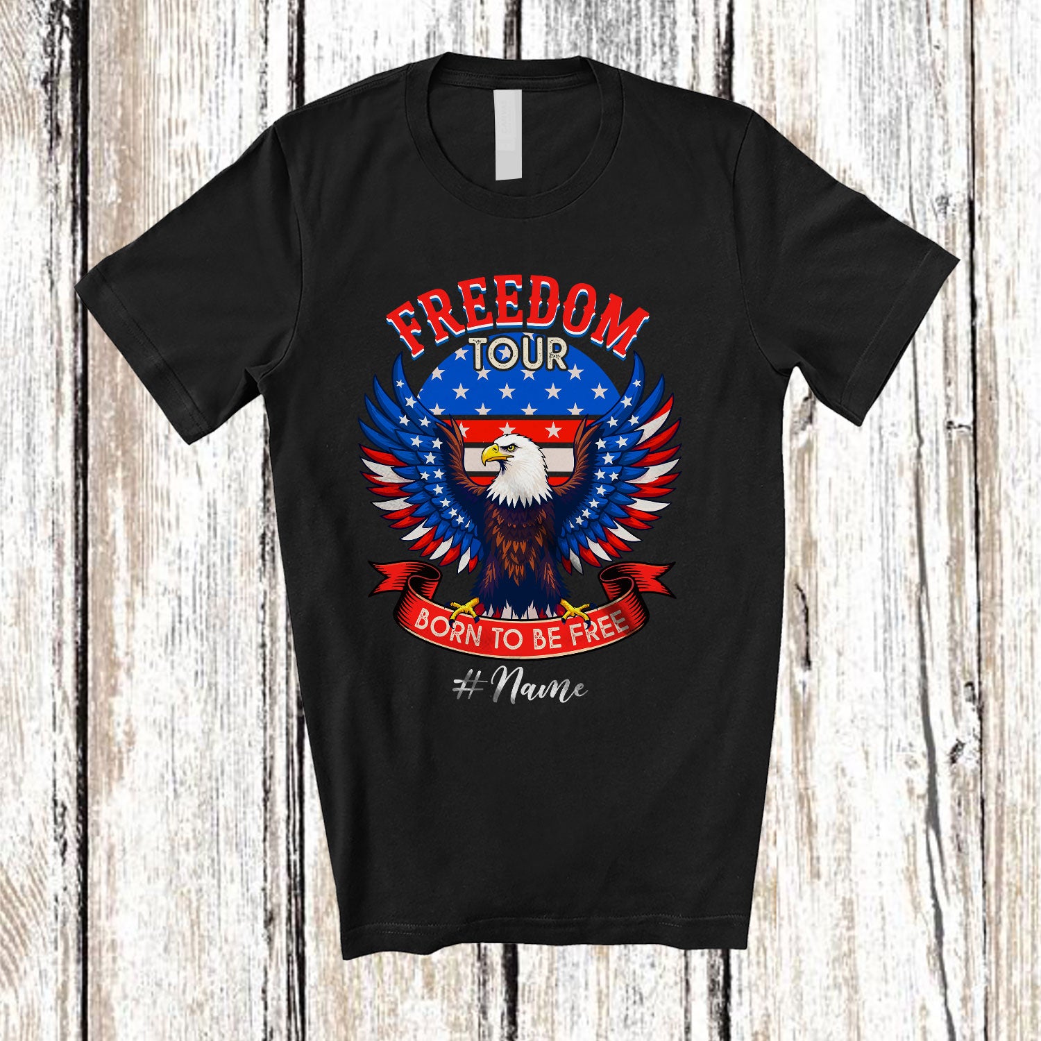 Personalized Custom Name Freedom Tour Born To Be Free; Joyful 4th of July Eagle; Retro Patriotic T-Shirt