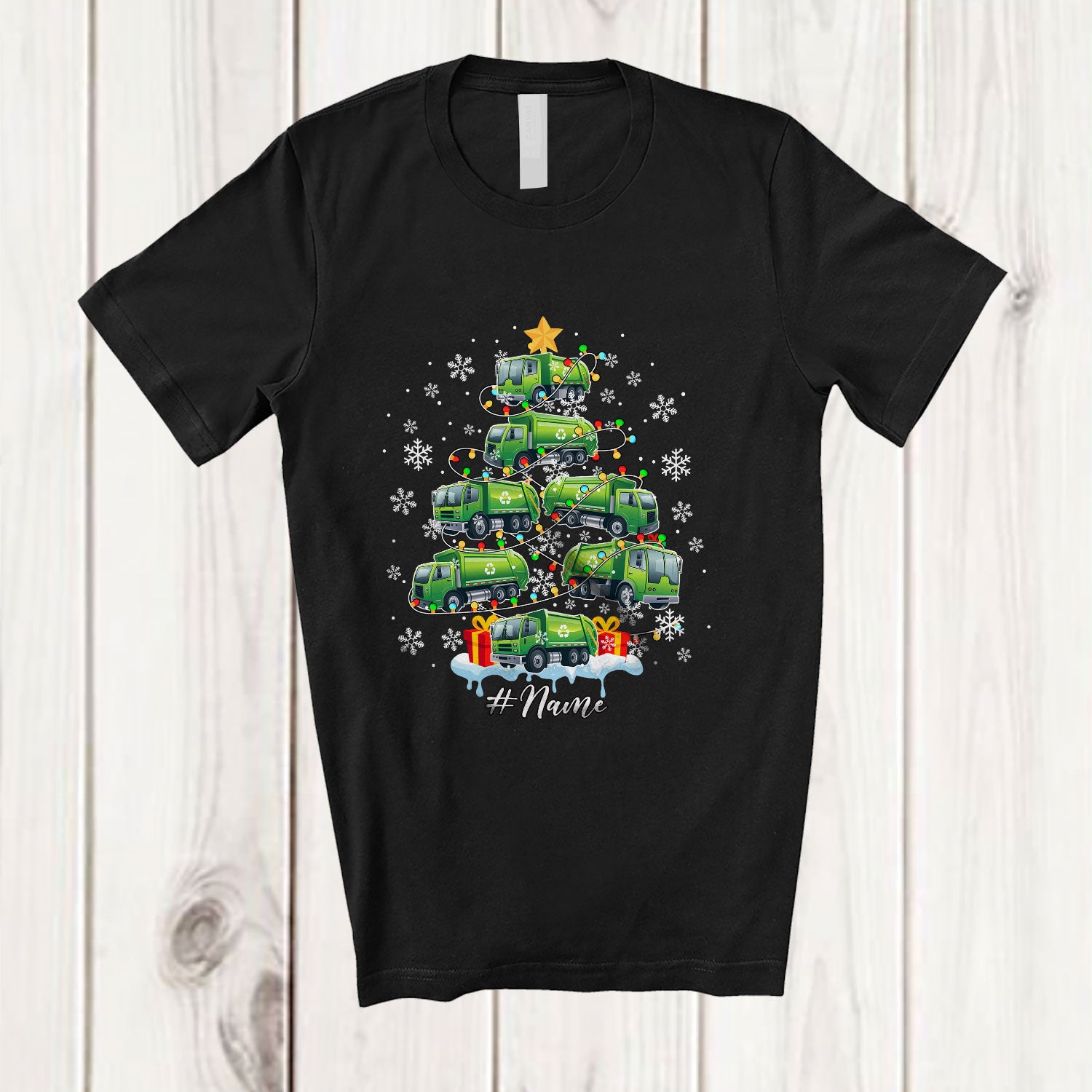 Personalized Custom Name Garbage Truck Christmas Tree; Amusing X-mas Lights Snow Driver T-Shirt
