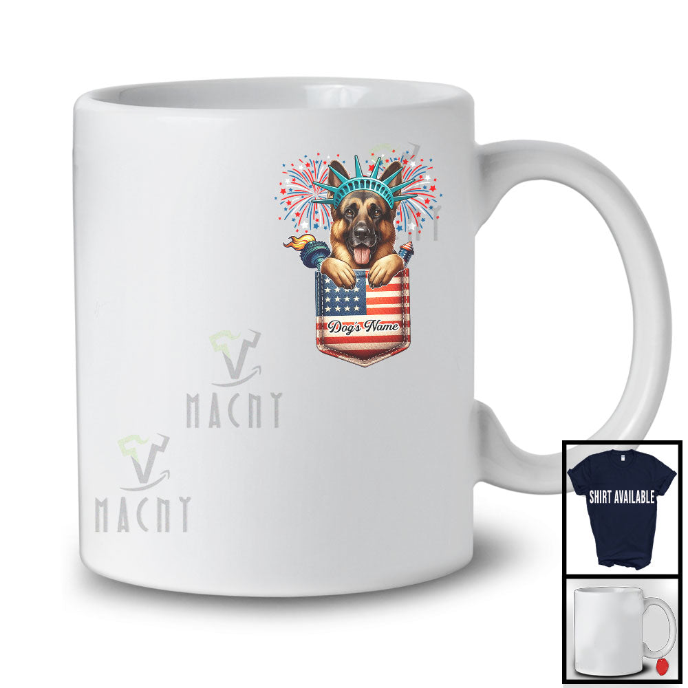 Personalized Custom Name German Shepherd in Pocket, Lovely 4th Of July USA Flag, Patriotic T-Shirt