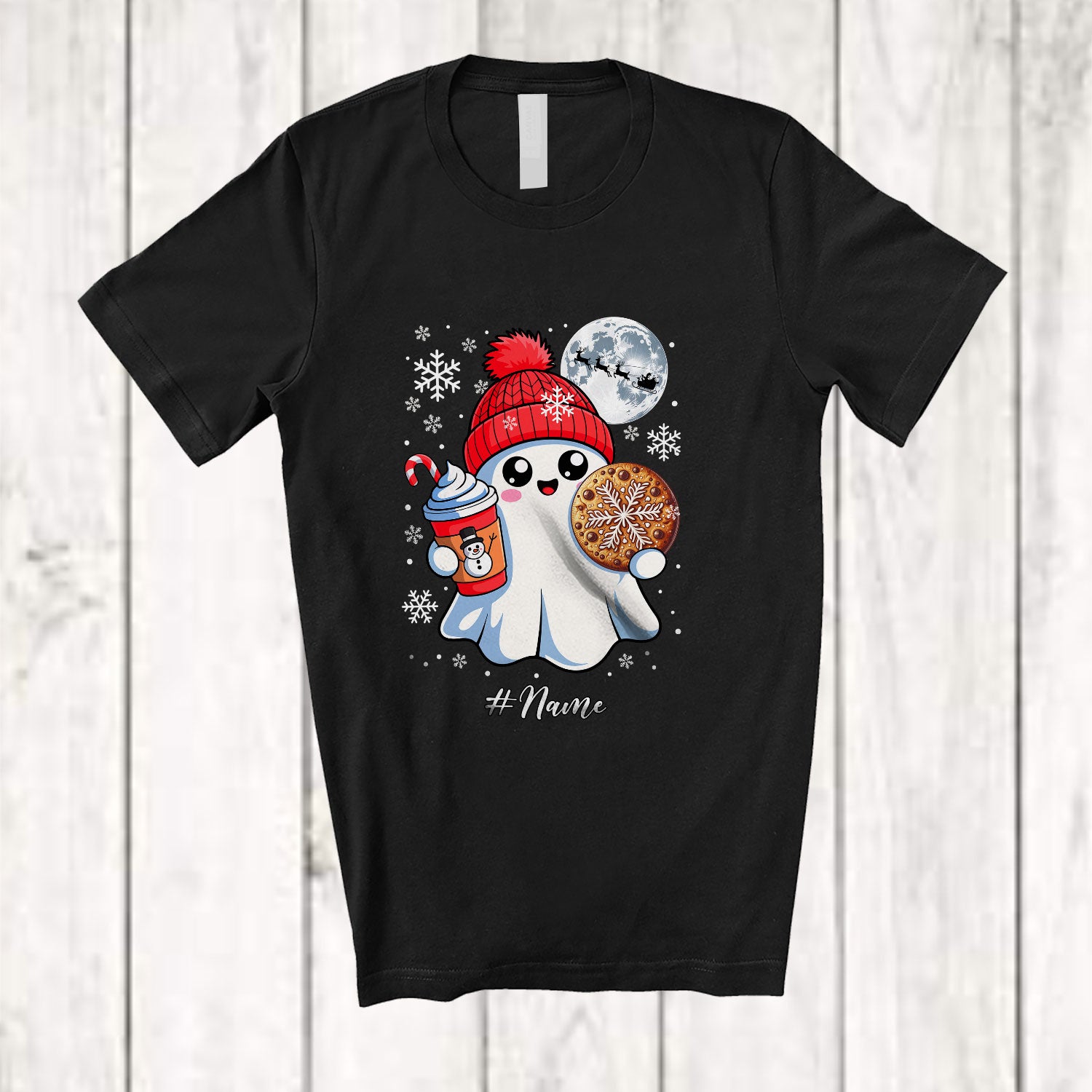 Personalized Custom Name Ghost Boo Holding Cookie; Humorous Christmas Moon; Baking Baker T-Shirt