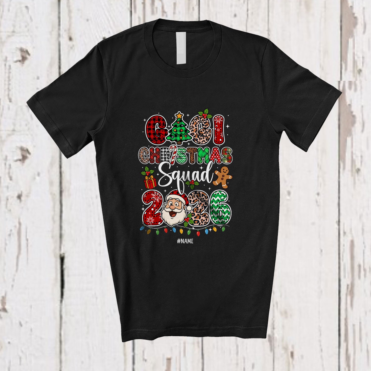 Personalized Custom Name Gigi Christmas Squad 2026; Joyful Leopard Plaid Santa Face Family T-Shirt