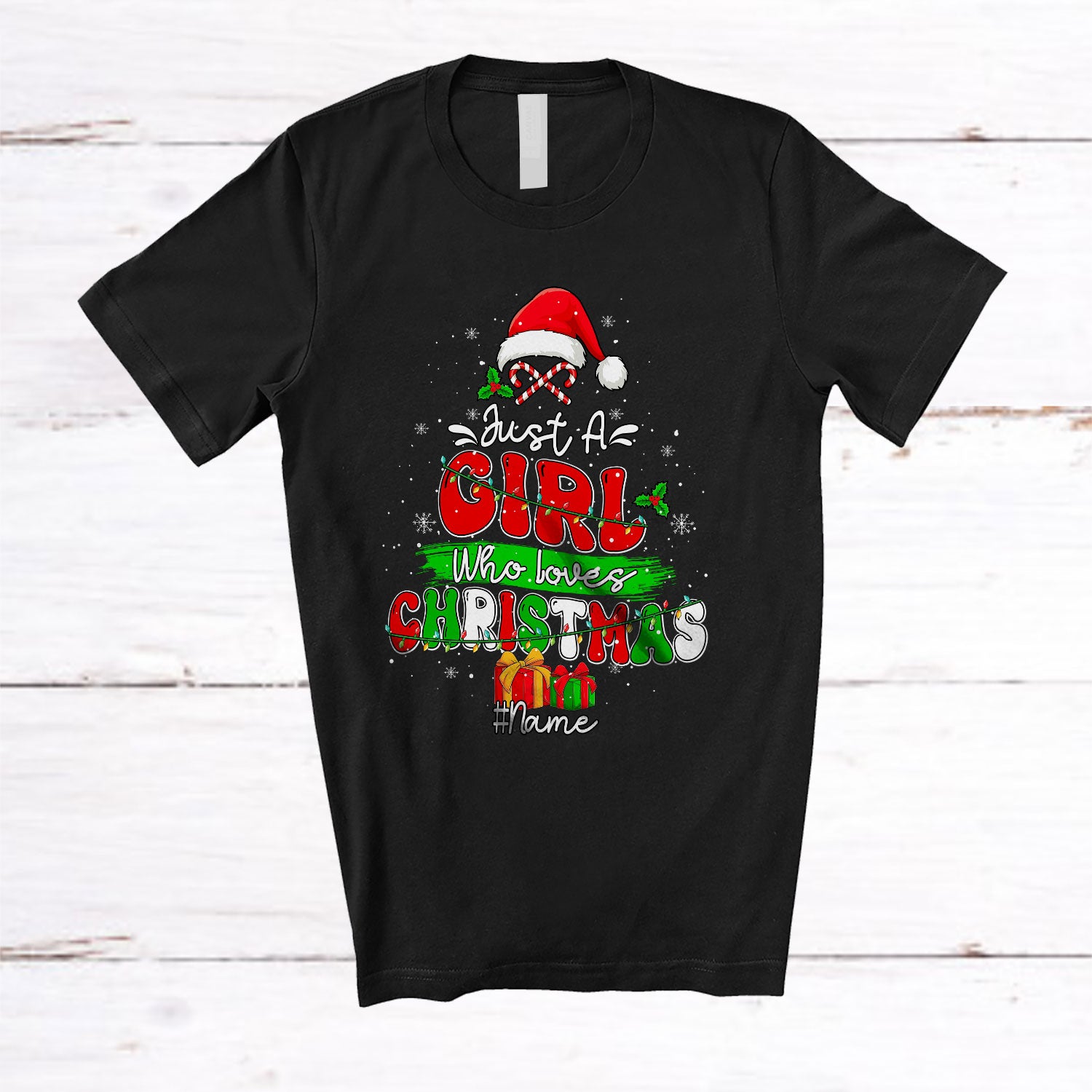 Personalized Custom Name Girl Who Loves Christmas; Amusing X-mas Tree Santa; Friends Family T-Shirt