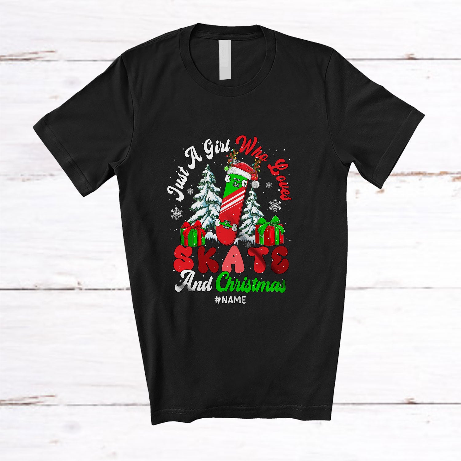 • Personalized Custom Name Girl Who Loves Skate And Christmas; Joyful Family Group T-Shirt. This cotton t-shirt is a durable staple product with a classic fit. One of the most popular items, it has a relaxed style made for everyday and casual wear.