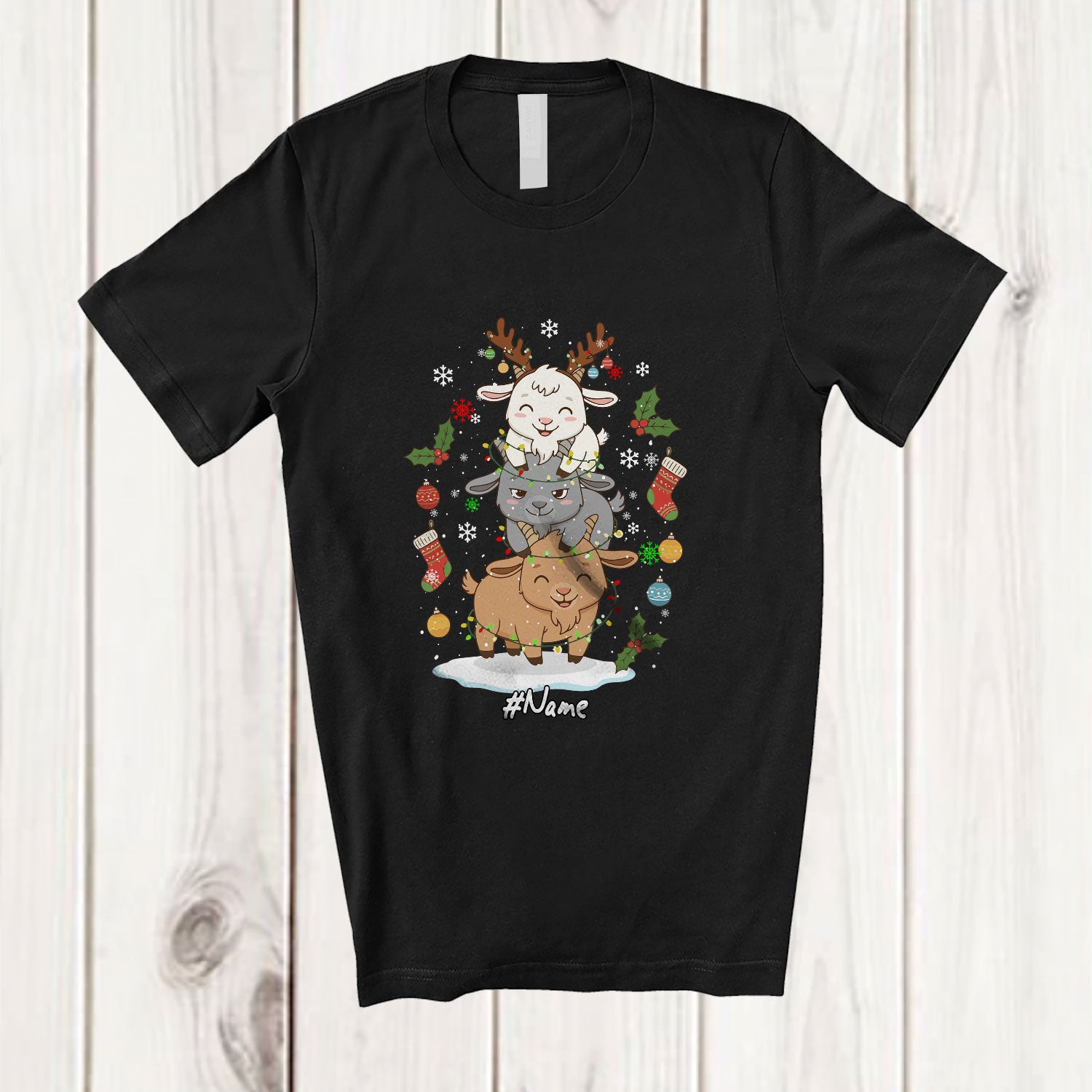Personalized Custom Name Goat Reindeer Christmas Tree; Lovely X-mas Lights Farm Farmer T-Shirt