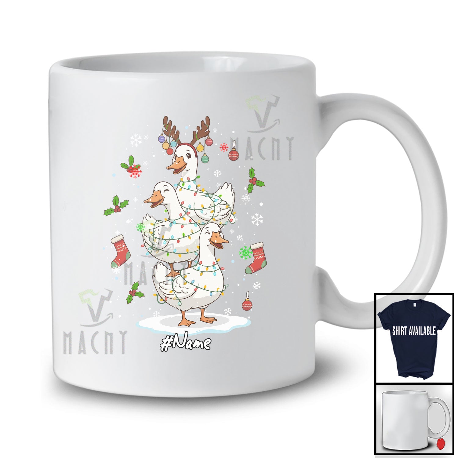 Personalized Custom Name Goose Reindeer Christmas Tree; Lovely X-mas Lights Farm Farmer T-Shirt. This cotton t-shirt is a durable staple product with a classic fit. One of the most popular items, it has a relaxed style made for everyday and casual wear.