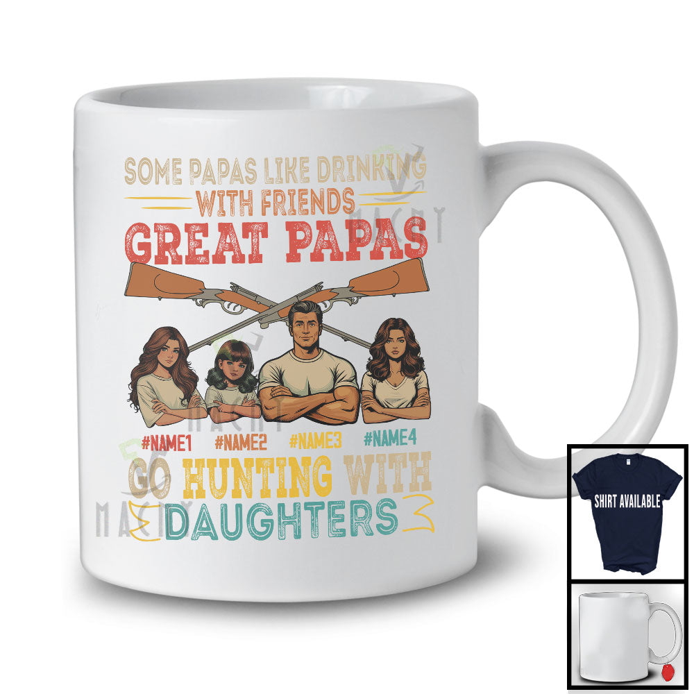 Personalized Custom Name Great Papas Go Hunting With 3 Daughters, Proud Father's Day Family T-Shirt