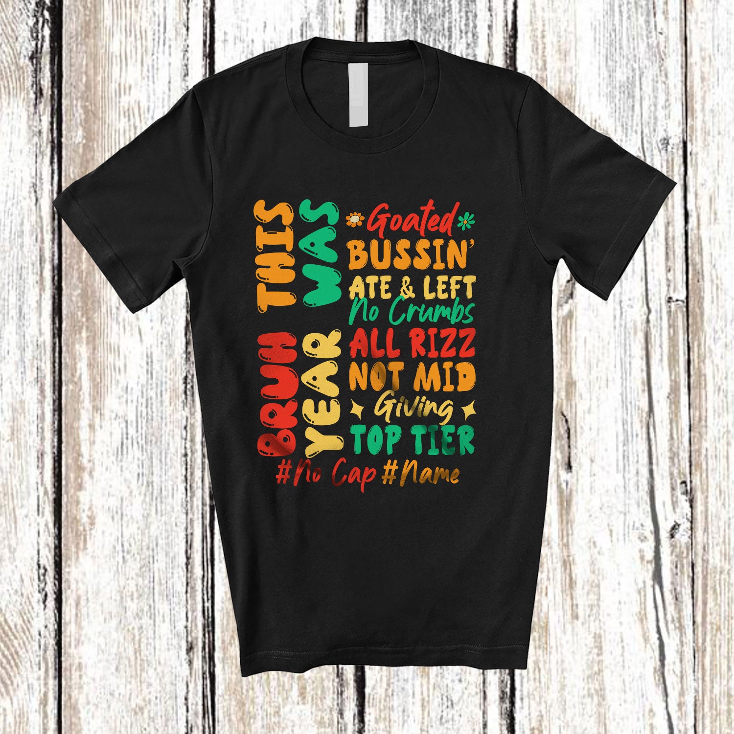 Personalized Custom Name Groovy This Year Was Goated No Cap; Joyful Last Day of School Students T-Shirt. This cotton t-shirt is a durable staple product with a classic fit. One of the most popular items, it has a relaxed style made for everyday and casual wear.