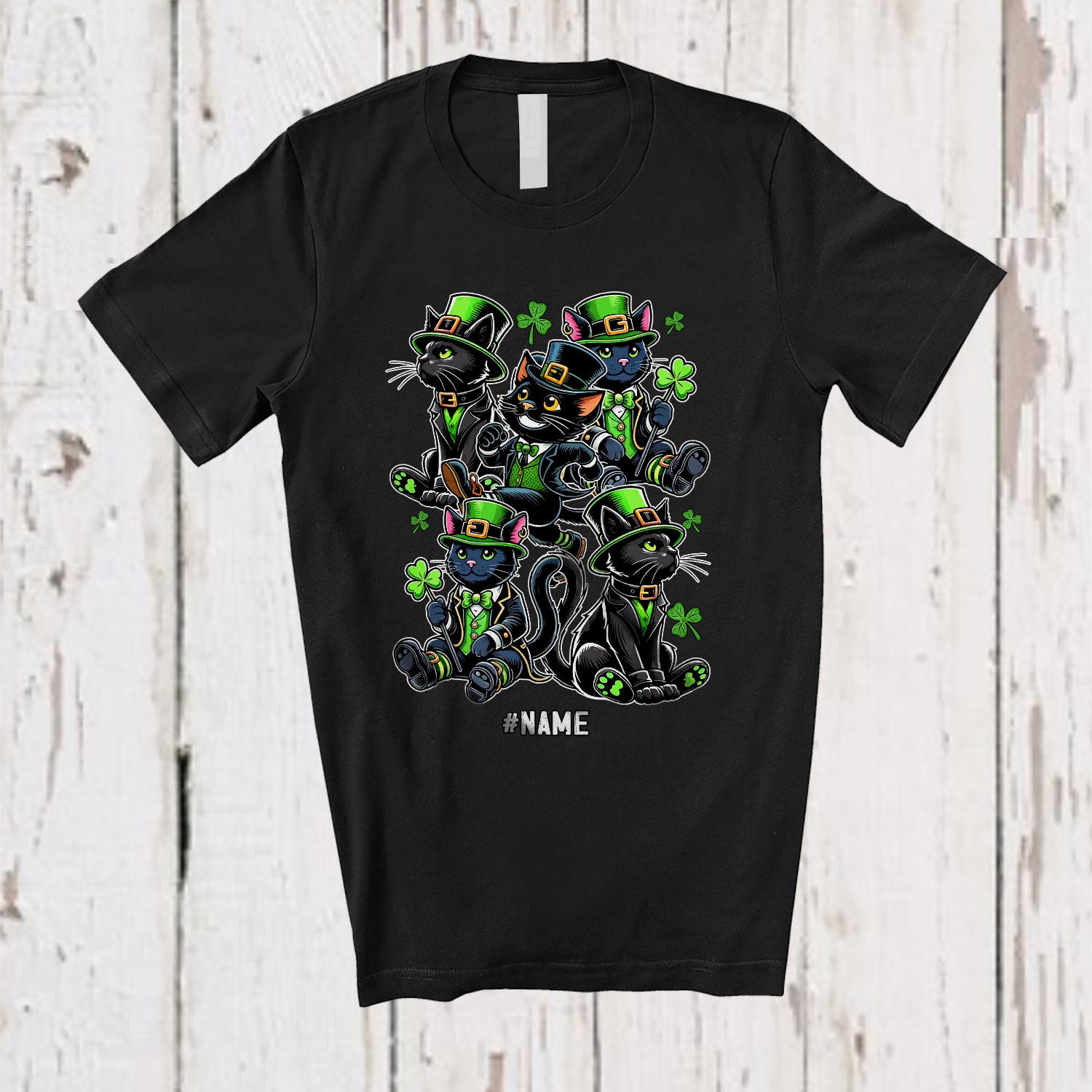 Personalized Custom Name Group Cat Leprechaun; Lovely St. Patrick's Day Shamrocks T-Shirt