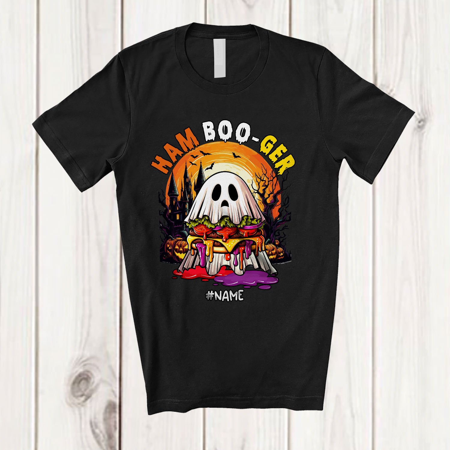 Personalized Custom Name Ham Boo-ger; Creepy Halloween Moon Hamburger Ghost Cosplay T-Shirt