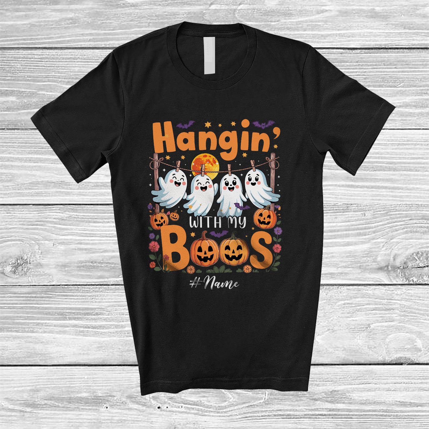 Personalized Custom Name Hangin' With My Boos; Humorous Halloween Costume Ghost Pumpkin T-Shirt