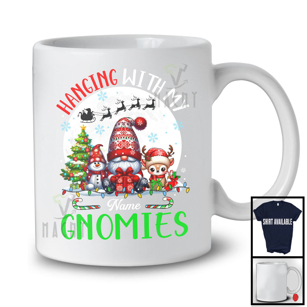 Personalized Custom Name Hanging With My Gnomies, Amazing Christmas Gnomes Reindeer Snowman T-Shirt